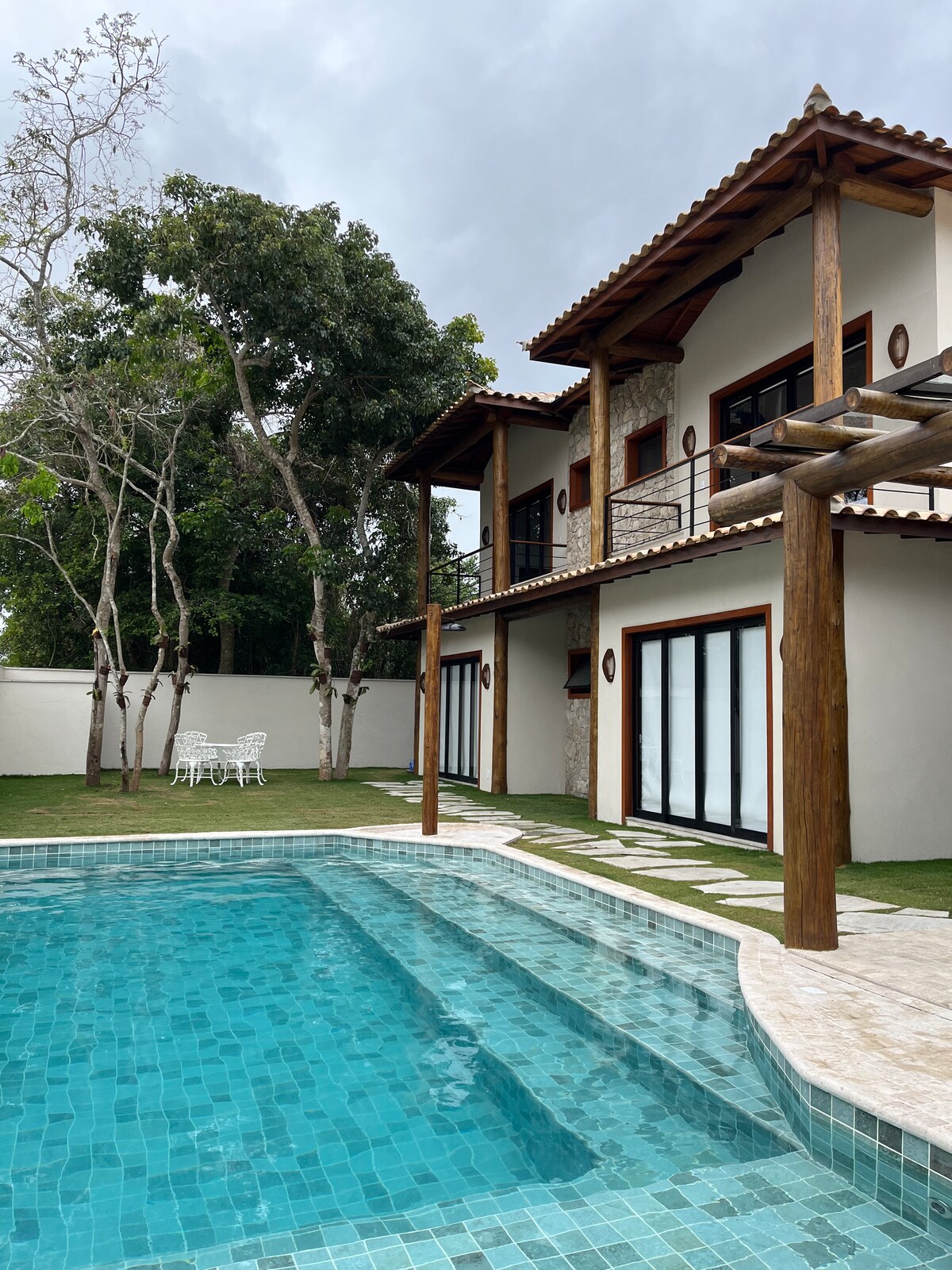 Enjoy this stylish and comfortable spot with your family at Manguinhos Beach, right on the sand. Take a short walk along the beach to reach a trail that leads to Tartaruga Beach, a beautiful destination, or stroll to Porto da Barra to enjoy the most popular restaurants in the area and relax with caipirinhas at sunset. For children, besides the heated pool and lawn, there is easy beach access from the house and even a small soccer field less than a five-minute walk away.