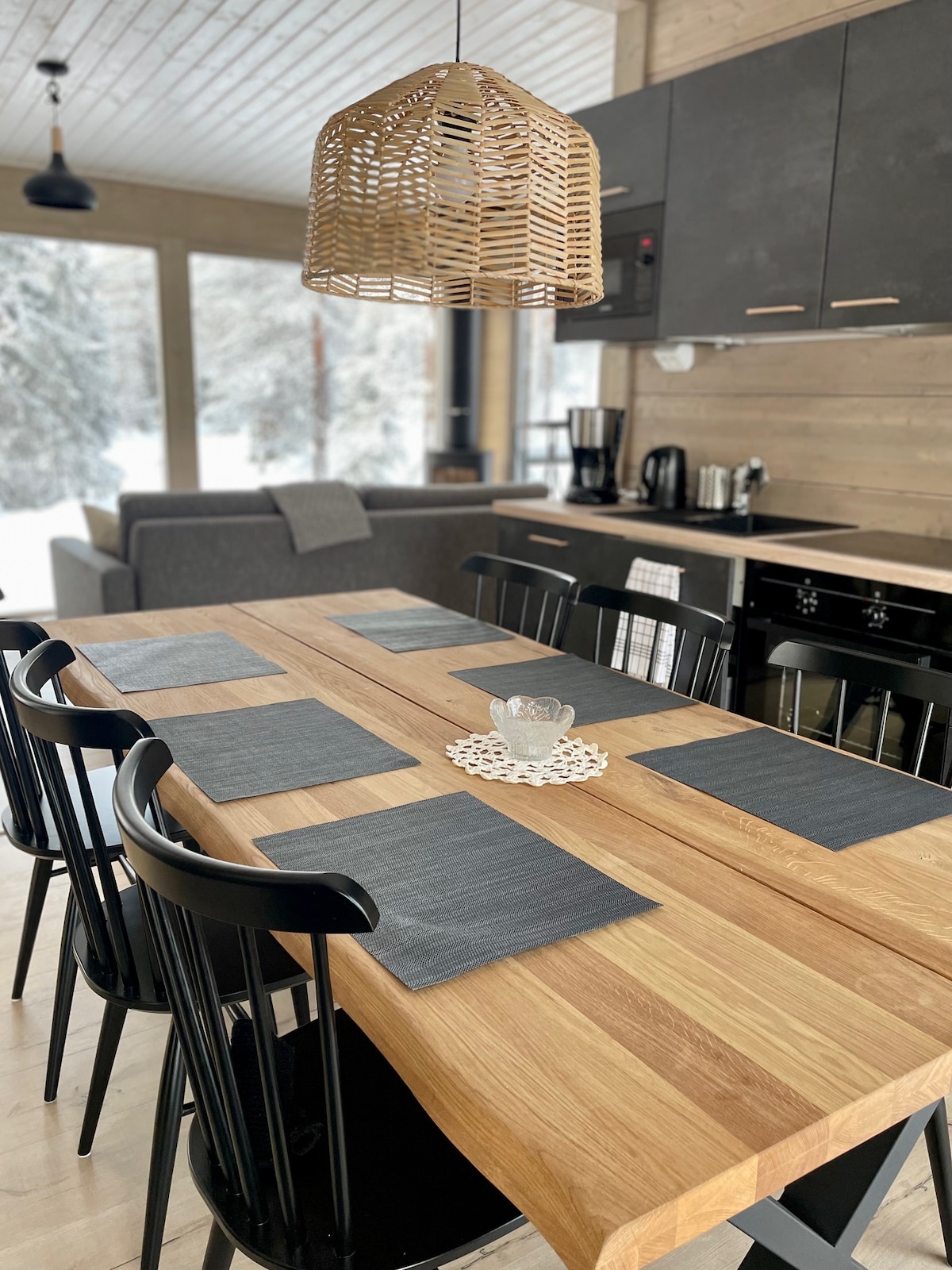 A brand new wooden holiday house isituated in small village 60km from Rovaniemi and 40km from the Swedish border. There is a big lake close to the cottage, pineforest and cross country skiing & hiking possibilities. The house is well equipped and modern. This is a good holiday house for families with children. There are two bedrooms, a balcony for sleeping, living room with one bed, sofas, dining table and kitchen, bathroom and sauna. You will see reindeer sometimes close to the house.