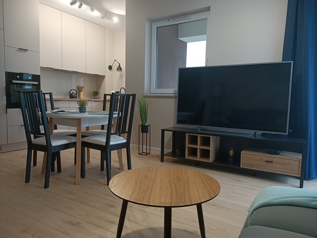 We invite you to a comfortable apartment located in a quiet area of Suwałki, at ul. Poznańska – perfect for a short vacation, business trip or family stay! ✔️ Location: The apartment is located in a modern building with an elevator, in a great location – close to shops (on the ground floor of the building there is a Lewiatan grocery store and other services), green areas and the main communication arteries of the city.