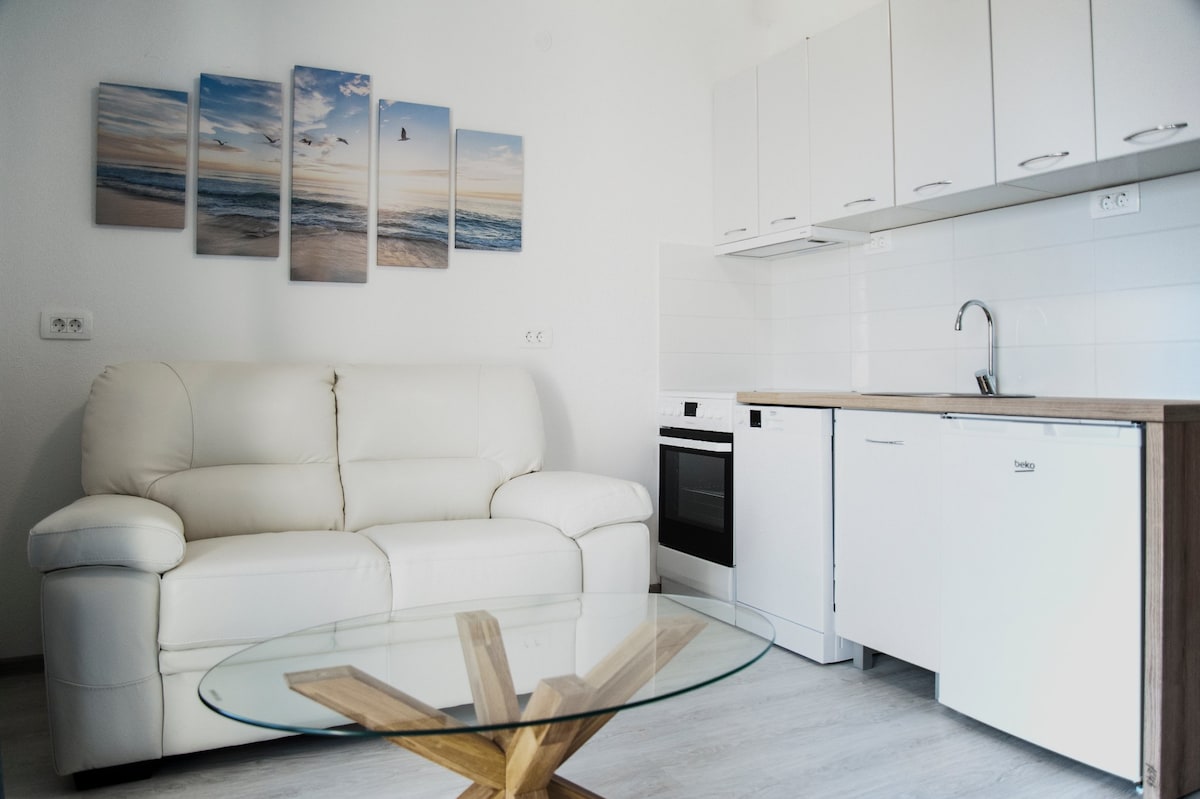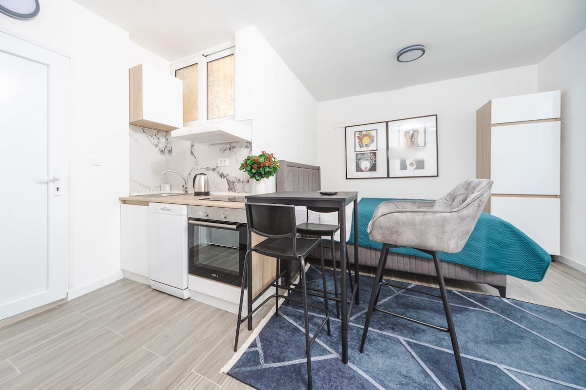 Welcome to Tamaris, a cozy apartment on the seaside promenade! 🌊 Enjoy stunning bay views through the glass wall in the living room, where the sofa converts into a comfy bed. The modern kitchen is fully equipped for longer stays, and the luxurious bathroom with a rainfall shower offers a spa-like retreat. Renovated in 2022, it blends style and comfort. Note: In July and August, vibrant nightlife and evening noise make it ideal for younger guests who enjoy lively summer vibes! 🎉