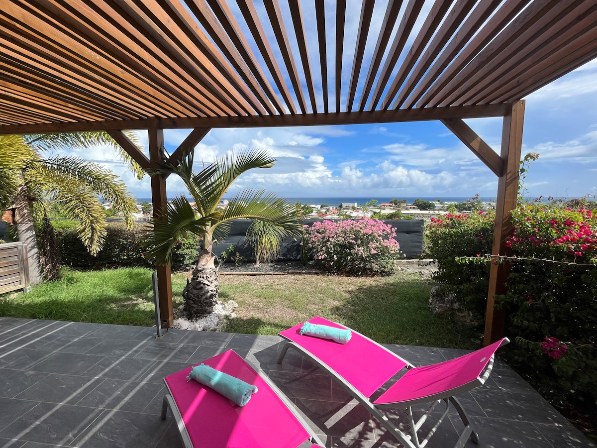 Discover a unique and peaceful accommodation with a magnificent view of the Caribbean Sea Just a 4-minute walk from the Anse des Rochers beach, 25 m2 air-conditioned studio with 180° sea-view terrace : entrance hall, sleeping area with 160 cm bed, 42" TV, shower room with WC, living area with sofa, fitted and equipped kitchen with washing machine. Water tank, WiFi, linen provided, parking nearby. Badge + bracelets given for pedestrian access to the beach of private Domaine de l'Anse des Rochers