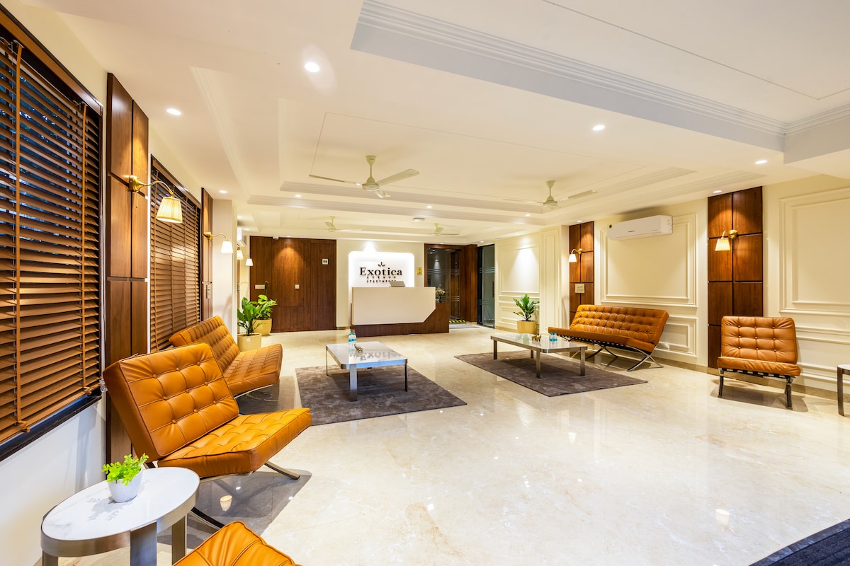 ◆Located in a prime area on Golf Course Road, Gurugram. ◆Just 20 minutes from IGI Airport (IGIA). ◆30 minutes to Yashobhoomi Convention Centre. ◆Close to Hospitals like Fortis Memorial Research Institute (2.6 Km) & Max Hospital (2.2 Km). ◆Fully-serviced 1-BHK suite ideal for short or long-term stays. ◆Access to amenities: ✔Gym ✔Common swimming pool ✔On-site restaurant ✔Expansive terrace with stunning city skyline views, ideal for relaxing