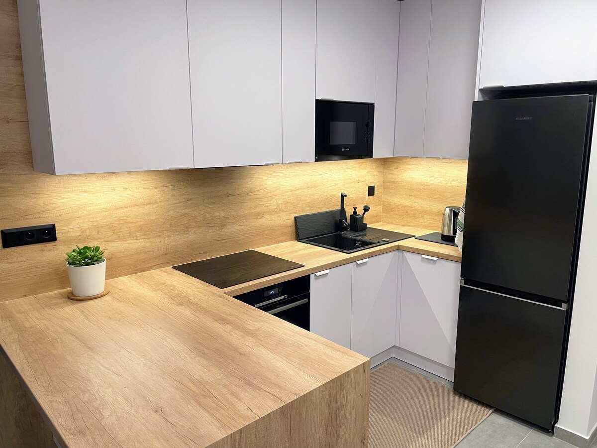 The apartment is near the city of Žilina (10 min. by car), offers a large kitchen, a cozy living room and beautiful surroundings. The apartment is located in a new building, it is fully equipped, furnished with new furniture. It also offers a spacious terrace with a gas barbecue grill (free for guests). The private jacuzzi is located in the room, right next to the apartment. The price for the jacuzzi is 35€/4h. A cot is also available. For stays longer than three nights, guests receive a gift.