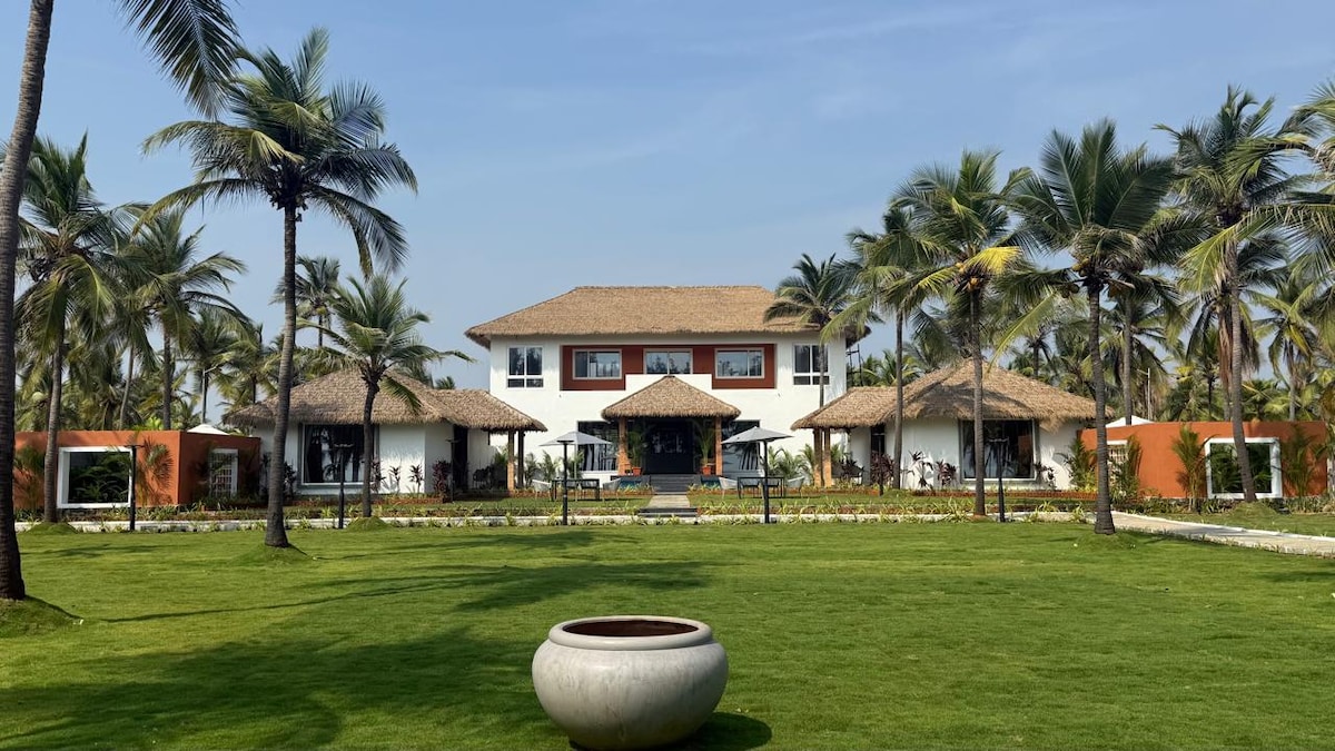 Welcome to Villa Ocean Whisper, a serene four-bedroom beachfront retreat set along the shores of the Gulf of Mannar, Tamil Nadu—just 1.5 hours from Madurai and Tuticorin airports. The villa features four spacious bedrooms, including two two-bedroom cottages with ensuite private pool jacuzzi, along with ocean-view living and dining areas, an ocean-facing gazebo over a water body, and a one-acre sea-facing lawn with direct access to a private beach. Ideal for couples, families, or friends.