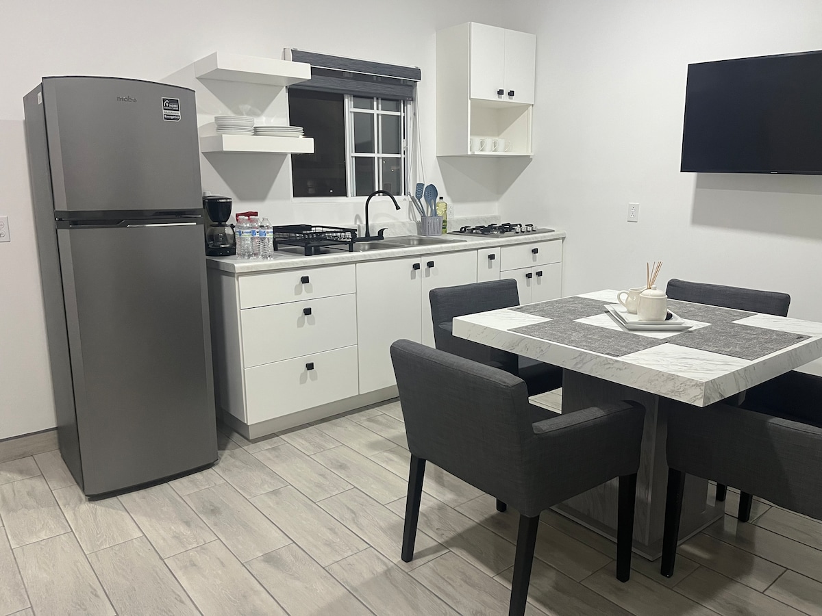 Experience the perfect home away from home! Enjoy the comfort of this brand new, quiet and secure apartment, complete with all essential amenities. Go out to the patio or terrace and take advantage of the laundry room. Located in the heart of the city, you are just a 7-minute drive from the lively tourist area, with easy access to the main roads. Plus, you are just 30 minutes from the charming Valle de Guadalupe. Your ideal getaway awaits you! **No private parking**