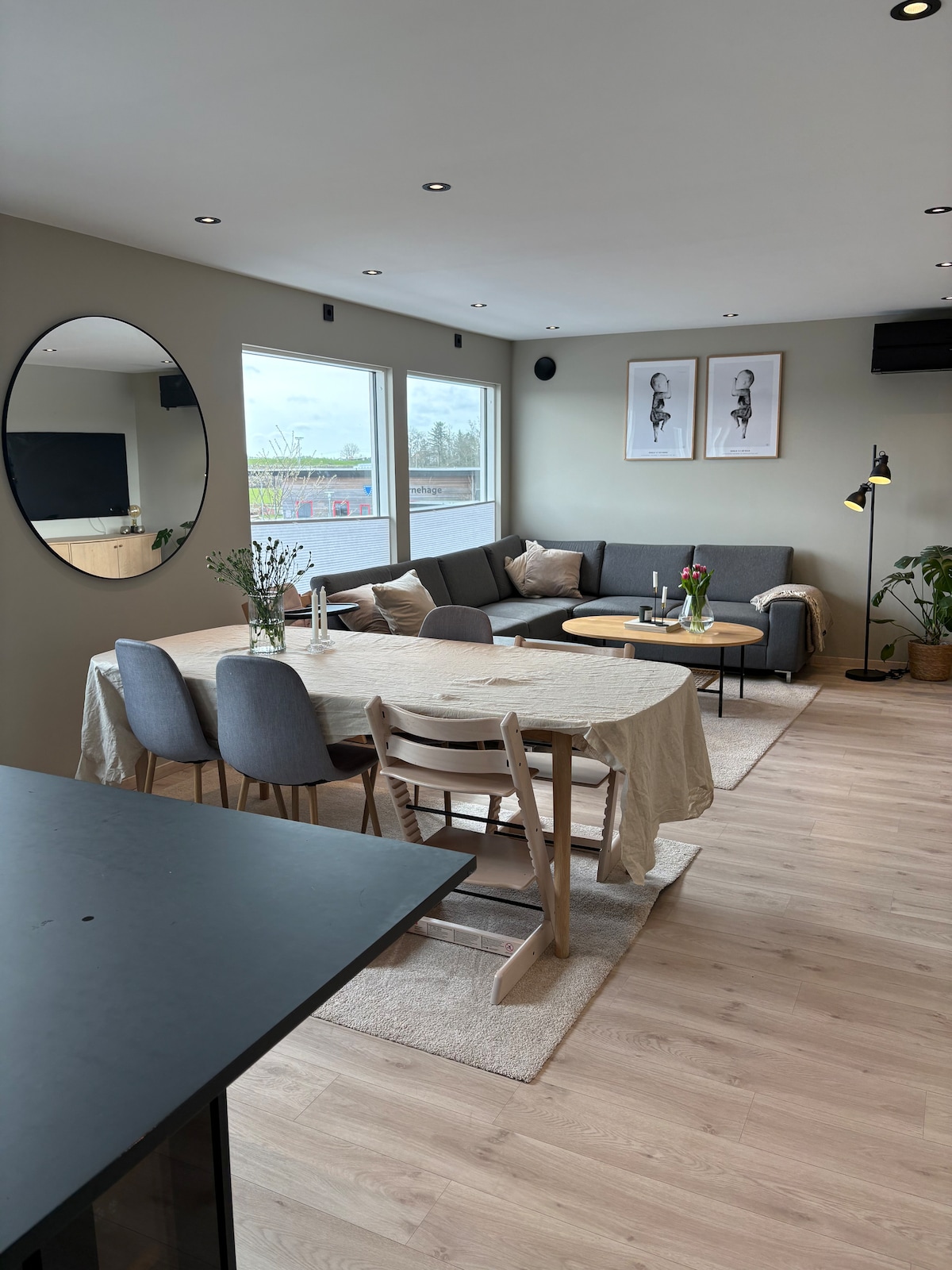 In this spacious and unique place, the whole group will be comfortable. The place was built in 2018, is modern, quiet and bright. It is perfect for those traveling alone or with children. We have a playground, football pitch and grocery store nearby. Free parking, but you have to renew it every 24 hours. The bus stop is 7 minutes to walk and takes 15 minutes to Stavanger city center. Our place is close to Tasta skatepark and Tasta center. We have towels and bed linen available if needed.