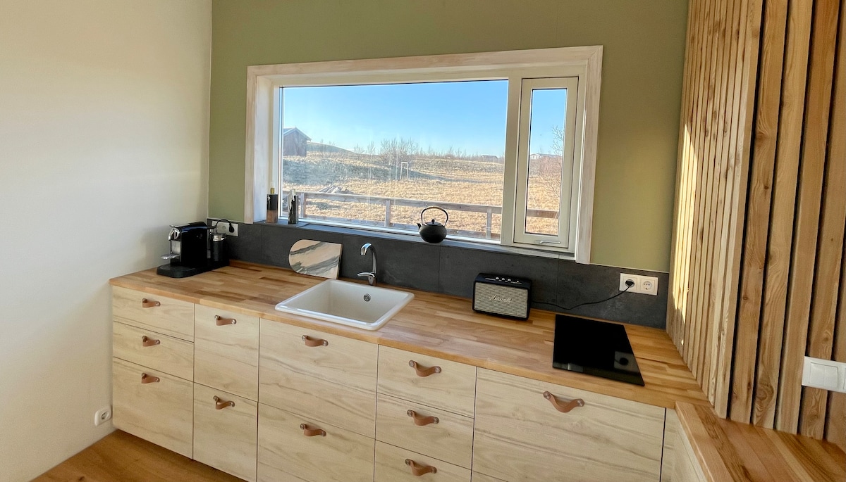 Relax with the whole family at this peaceful place to stay. Enjoy the relaxing countryside with horses all around. Close to the main attractions in the Golden Circle. Two bedrooms, one with double bed, one with two single beds and pullout sofa in the living room. Two baths, one with a shower. Well equipped kitchen, microwave, coffeemaker, toaster and oven.