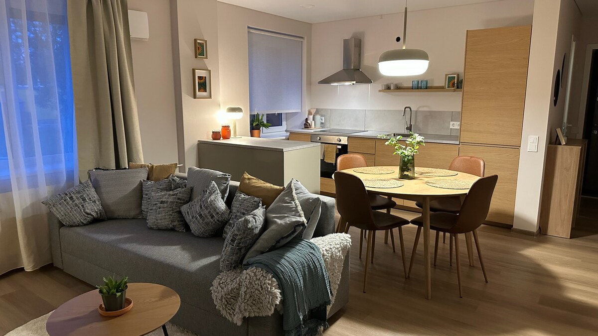 Stylish and cozy apartment in the center of Raseiniai, perfect for a comfortable stay. Located on the 1st floor, it has one bedroom with a comfy bed, a soft sofa for relaxing or extra guests, and a dining area. The kitchen is fully equipped, including a coffee machine, so you’ll feel right at home. Ideal for couples, solo travelers, or small families. Close to shops, cafes, and main attractions – everything is within walking distance.