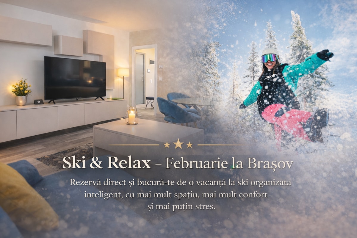 Grand Chalet Ramina, Poiana Brasov Enjoy comfort and tranquility in the mountains! Our apartment, located on the ground floor, offers easy access, a spacious and bright living room, comfortable bedroom, fully equipped kitchen and views of nature. Ideal for couples or families who want to relax, being close to the slopes and mountain trails.