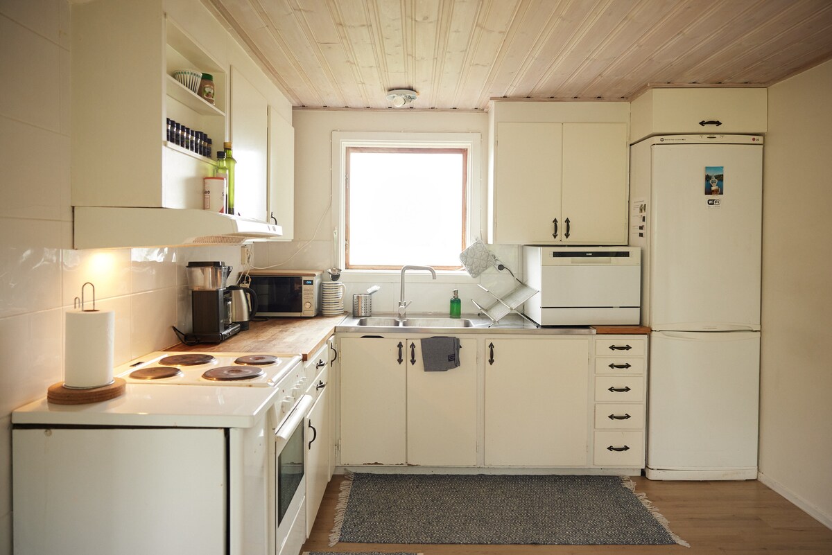 The sea virtually at your feet. Tastefully decorated cottage with double bed and extra bed. Unique secluded location on its own peninsula at the shore, panoramic views and private jetty for sunbathing, swimming and fishing. Fully equipped kitchen. Shower and TC. Furniture and bbq on the jetty. Your stay at the Seaside cottage will be without carbon footprints and in line with a sustainable way of living