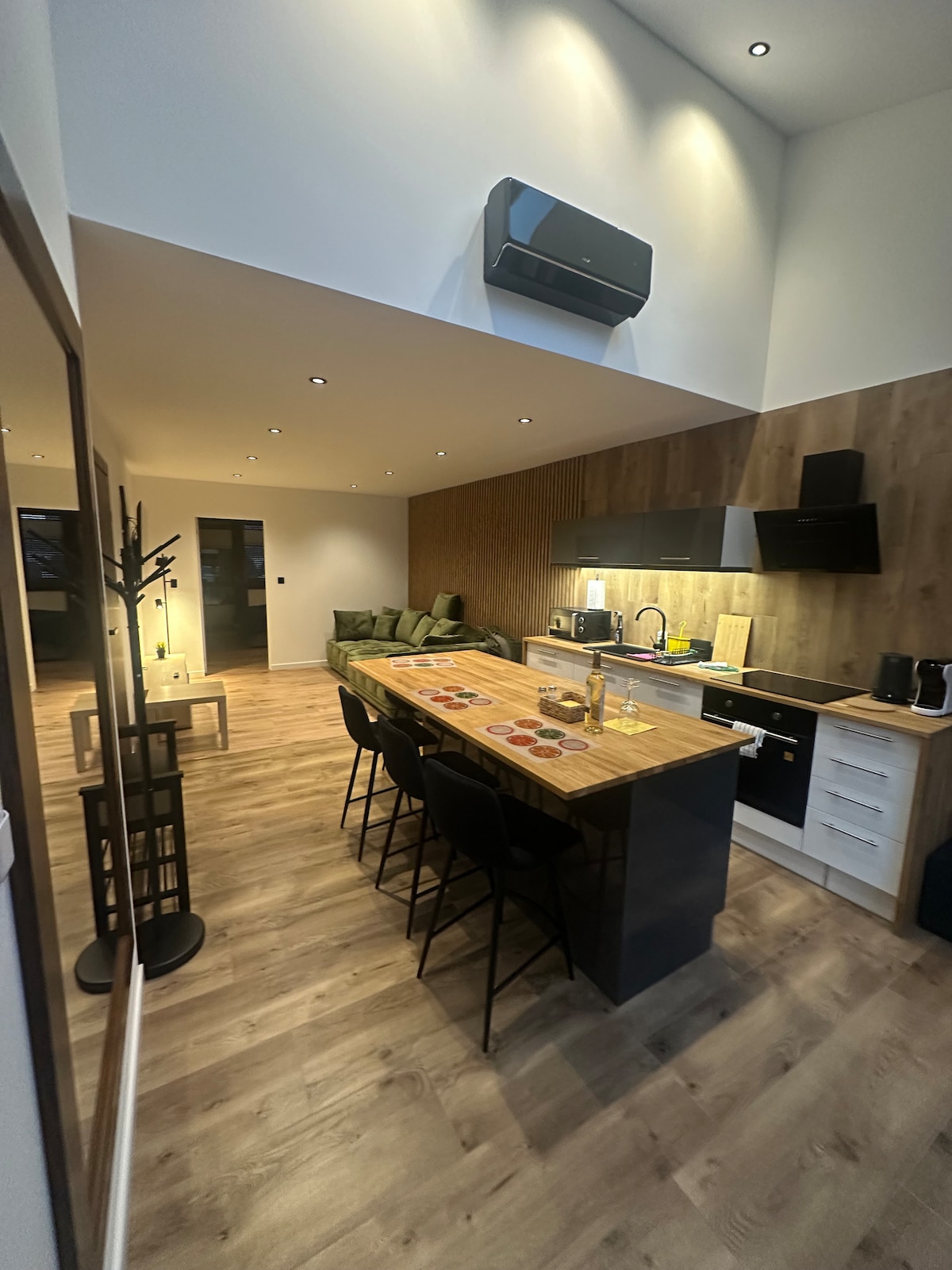 Our modern, atmospheric home is the perfect space for relaxation, a weekend getaway, a romantic stay, or a family vacation. This 80-square-meter (861-square-foot) house is located on a large, fenced-in plot. The interior has been designed to combine comfort with a unique atmosphere. A spacious, large living room, an open mezzanine, wooden stairs, and a brick wall give the interior a loft-like feel. The home is fully equipped. For those interested, a Jacuzzi is available [minimum 2 nights, for a fee]—perfect for evening relaxation.