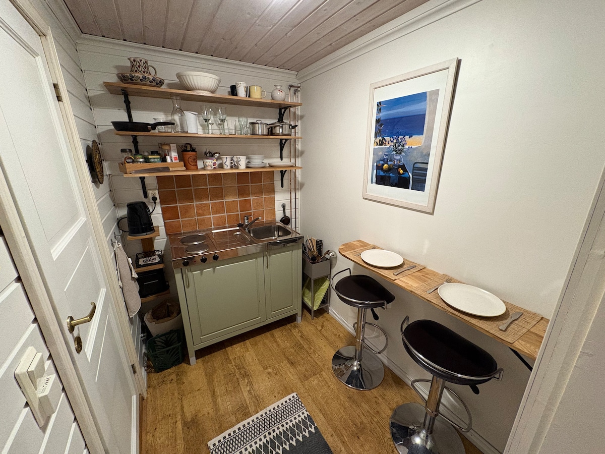 2 komfortable soverom Stort fullt utstyrt kjøkken Moderne bad Uteområde Nydelig skog turer Flotte skiløyper, både på dagtid og kveld! Stedet Koselig liten hybelleilighet med godt utstyrt kjøkken. Sengen er en sovesofa med overmadrass. Sengetøy og håndklær er inkludert. I leiligheten finnes bøker i forskjellige språk og en del selskapsspill. Leiligheten har gulvvarme. Den har også vedovn som du kan tenne i på kalde dager. Gjestetilgang Det er en ledig parkeringsplass for 2-3biler.