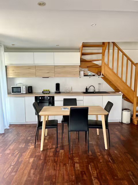 cozy apartment in a quiet village while being close to all amenities. this studio has been refurbished in a beautiful farmhouse and consists of a living room with equipped kitchen (induction cooktop, double microwave, fridge), sofa bed, TV as well as a bathroom with shower, toilet and washing machine. A double bed in the mezzanine that can also accommodate a baby bed. Close to Fontainebleau Castle, Vaux le Vicomte, medieval city of Provins, Disneyland 35 minutes away...