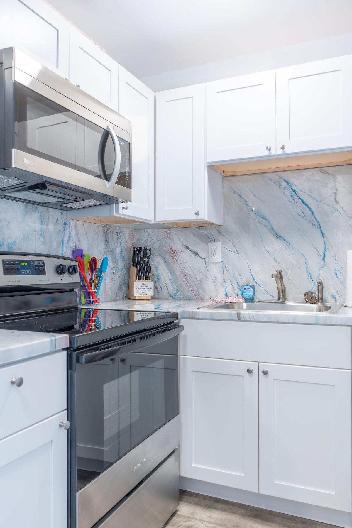 Kick back and relax in this calm, stylish space. This completely remodeled actual 1 bedroom is beautiful! The views are absolutely amazing. This corner unit has a full kitchen with a full size stove, full size refrigerator, dishwasher, and microwave. The bedroom has a brand new queen size bed with your own tv. The bathroom is completely redone. Just steps from the newly remodeled pool and one of my favorite restaurants on the island. Sudi’s. The crystal clear beach is just a short walk.