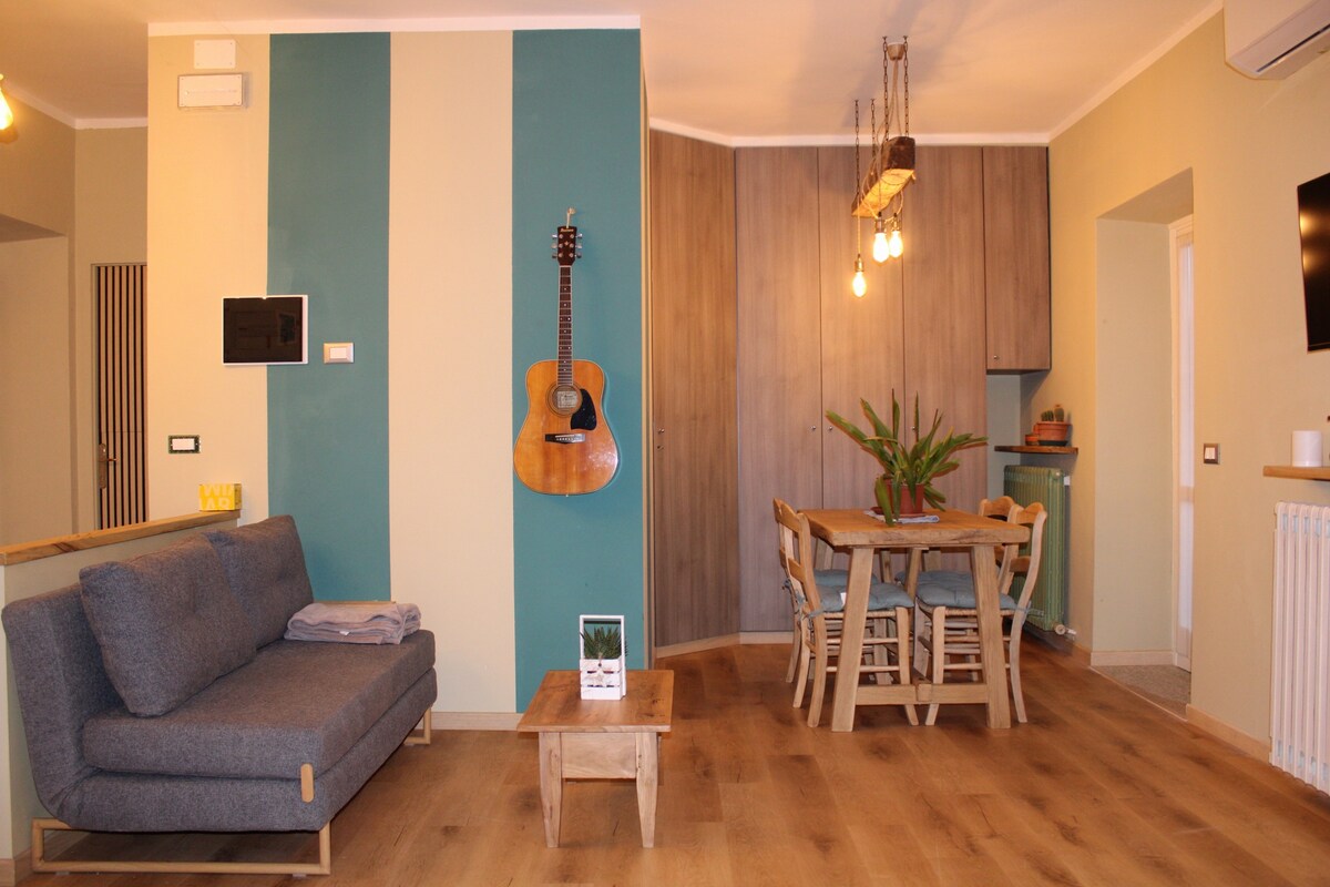 Studio apartment, with kitchenette and bathroom completely renovated. Equipped with all the comforts: Wi-Fi, 43" Smart TV, air conditioning, washing machine, iron, fridge with freezer, capsule coffee machine, kettle, microwave, induction stove, dishes and cookware. Breakfast, tea and coffee products. Towels, intimate cleanser and shower shampoo. Garage for storing bicycles or motorcycles. There are free parking lots and all the necessary shops in the area.