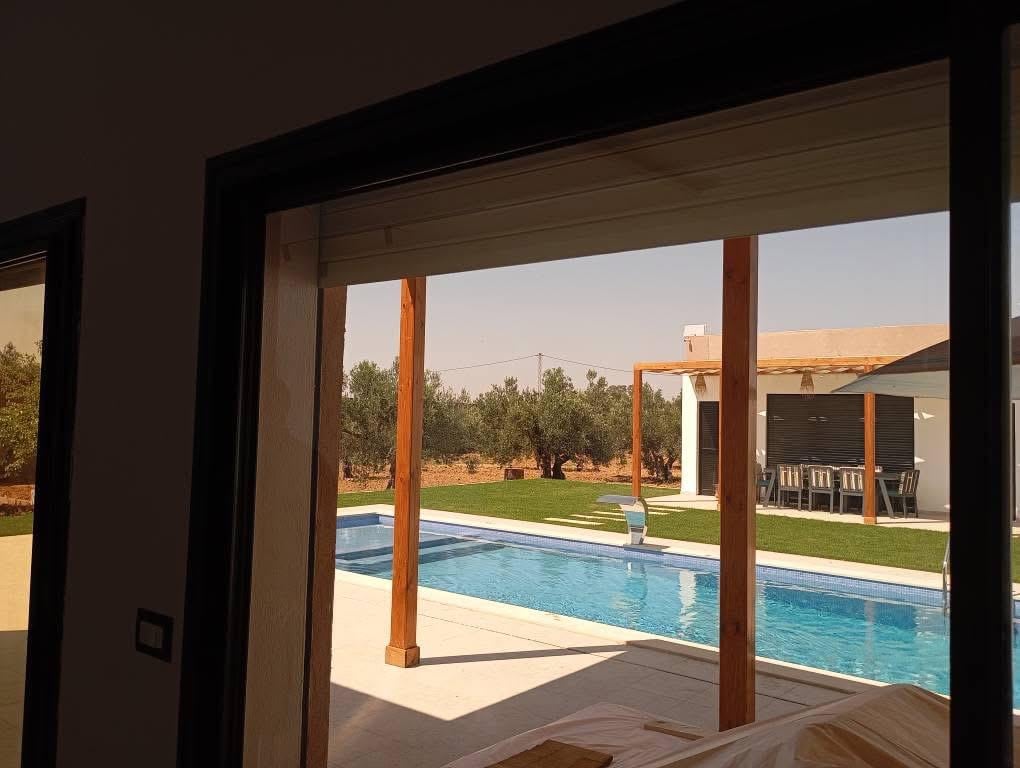 Eva's secret House makes your stay more and more enjoyable. This luxurious accommodation consists of two large bedrooms, two modern bathrooms, large open-plan kitchen, shallow pool for relaxation and an open terrace with greenery. It is located in the city center close to all amenities (supermarket, pastry shops, bakery, banks) you will also be a three-minute walk from the beautiful Mahdia beach. Note: water is available 24/7
