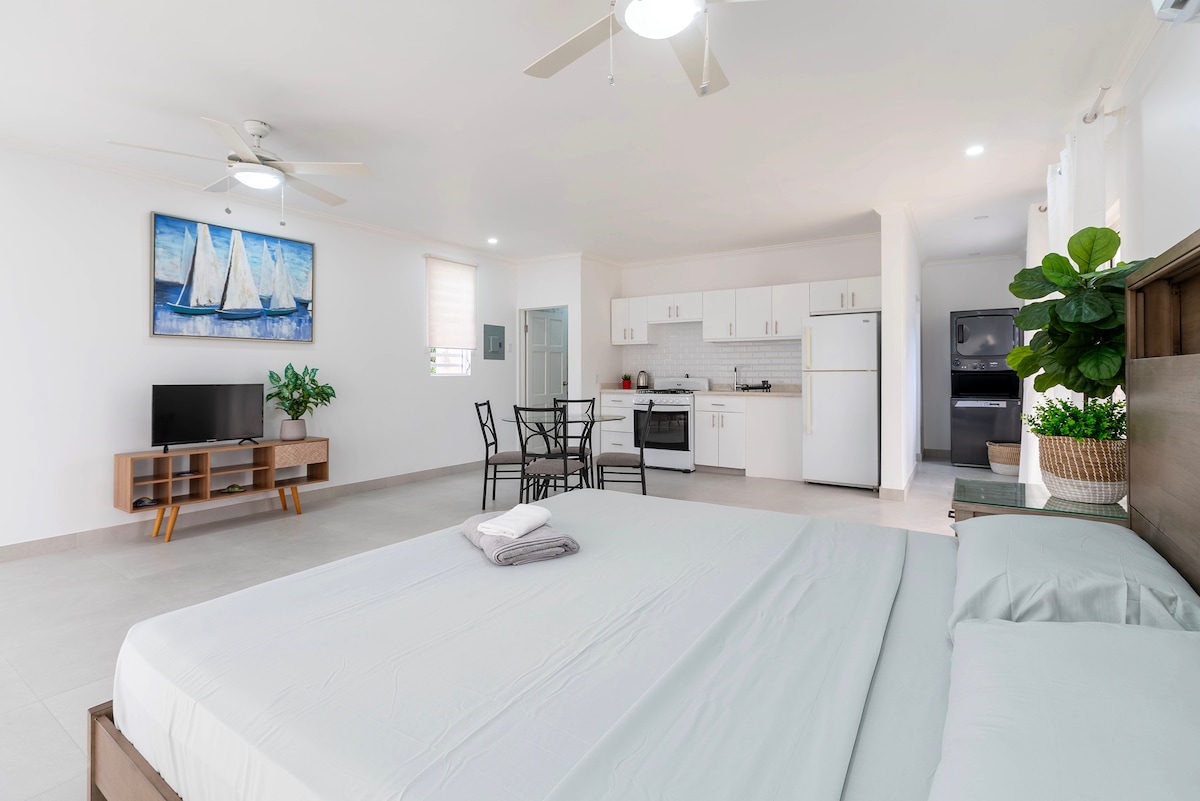 Enjoy our newly built property completed in 2022. This modern, cozy studio apartment is an ideal vacation spot for travelers who are looking for accommodation on the south coast of beautiful Barbados. We are located in Rendezvous Gardens which is a quiet residential neighbourhood, minutes walk from beautiful south coast beaches, supermarkets, banks, restaurants and night life. Approximately 15 minutes drive from the airport and 10 minutes drive to the nightlife in St. Lawrence Gap. Show more