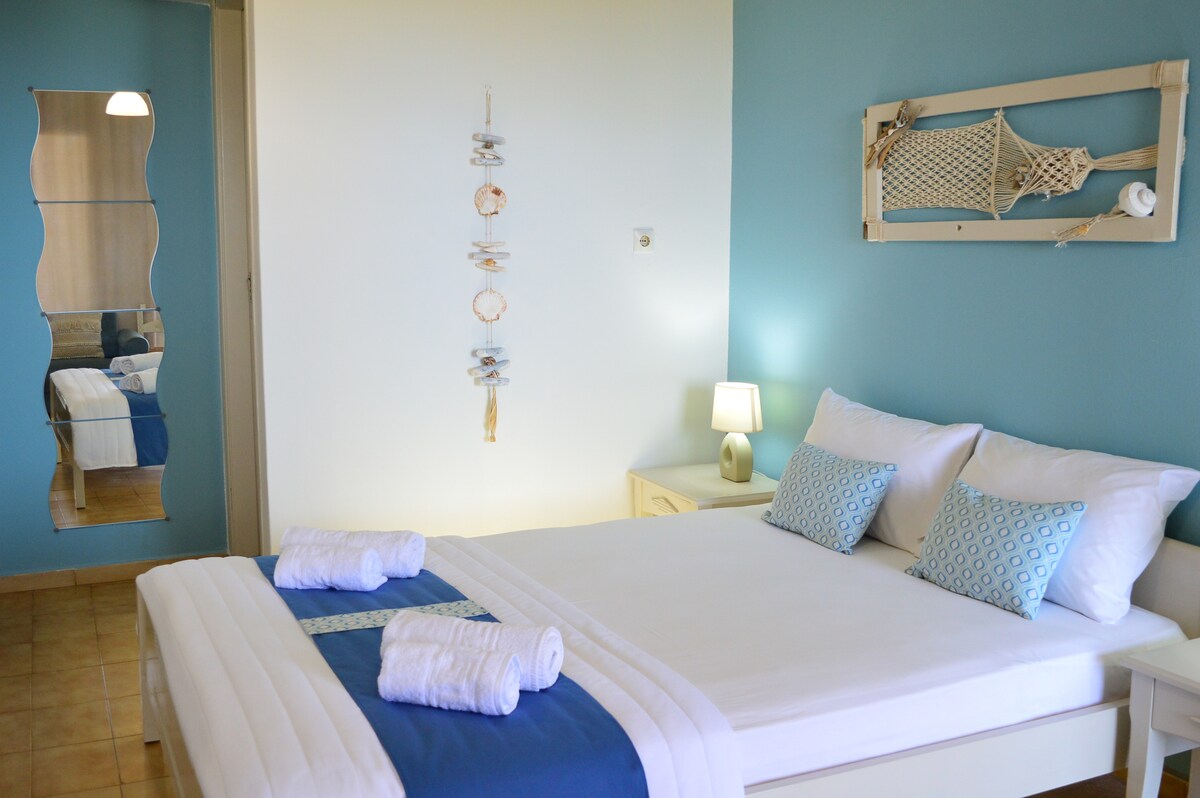 Whether you are traveling in couple or with family or friends feel free to reserve one out of the two "One Bedroom Apartments". Placed at a lower level of the complex, they offer a perfect spot for relaxation. With their private terraces and their cozy interiors that will make you feel at home, it is certain that your holidays are going to be one of a kind.