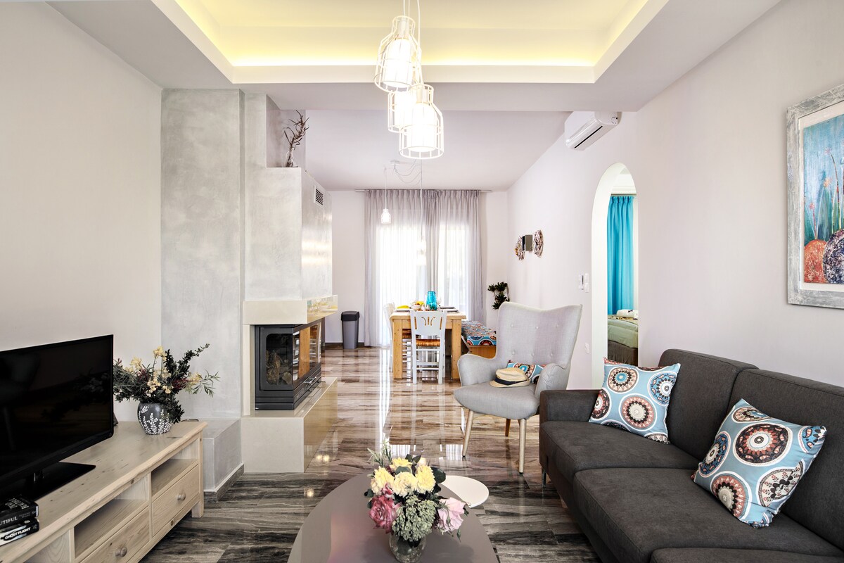 Villa Myrrini is at the entrance of the Asteri village, 14 km east of Rethymno and 3 km from the beach. Its sunlit interiors combine traditional elements such as stone and wood, along with the modern touches of design, this villa will enthuse you. The superb, outdoor functional deck that surrounds an azure 35m2 swimming pool will give you endless days and nights.