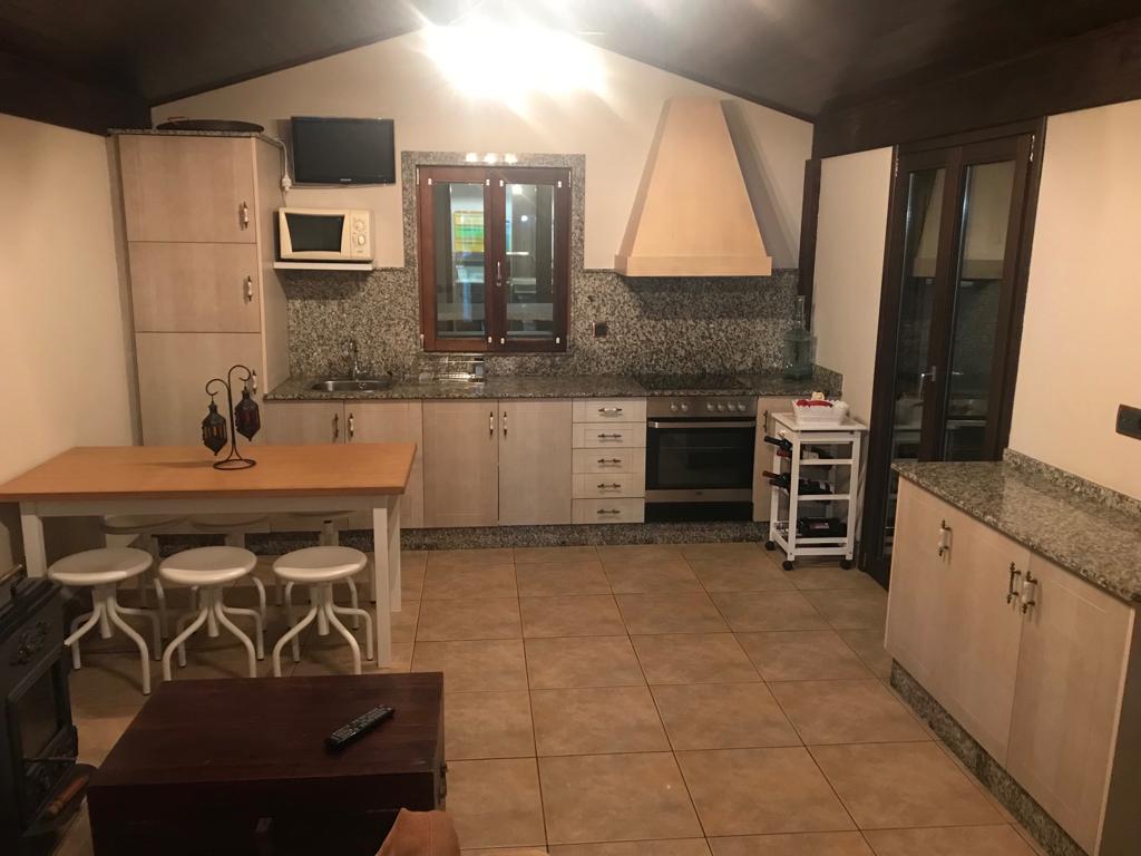 Wooden house with a swimming pool and a large garden. Ideal for couples with children or celebrating events, birthdays... Very modern and practical decoration. It has a bedroom with a double bed and a sofa bed in the living room. Bathroom with shower. Wood fireplace, barbecue, washing machine, private parking.
