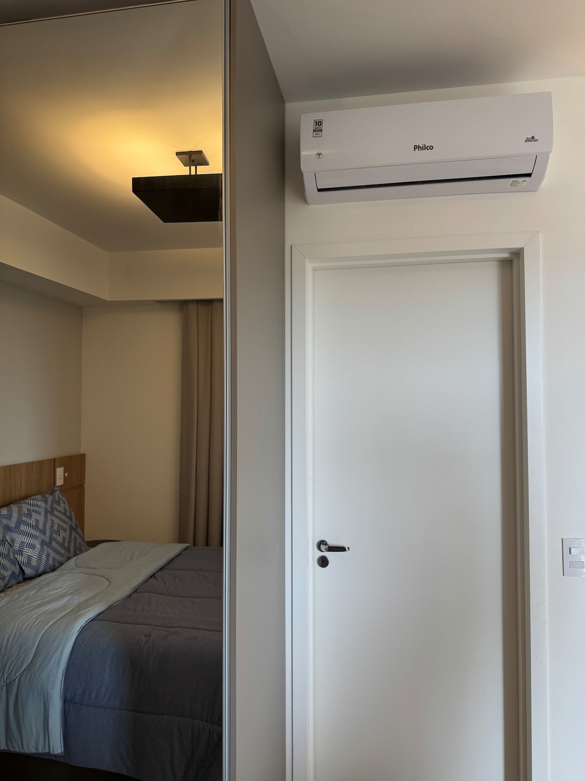 Modern and cozy Studio with excellent location close to the supermarket, pharmacy, bakery, gym. Decorated with attention to detail to provide a comfortable and welcoming environment for you to feel at home. The condominium offers 24h condominium, 1 space in covered parking, shared laundry and a complete leisure area, with swimming pool, sauna and gym. Ideal to relax and enjoy moments of tranquility.
