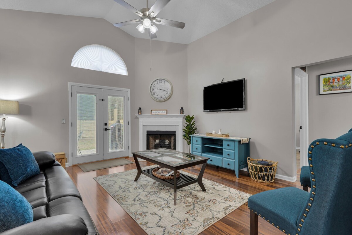 Welcome to The Blue House in Richmond Hill, GA! 🌿 A peaceful, fenced & pet-friendly getaway just 25–30 mins to downtown Savannah/Forsyth Park & Tybee Island, and 20 mins to Savannah Airport. 🐾 Features a queen bed, full bed, and twin bunk beds—perfect for families. Enjoy a spacious backyard or head 6 mins to Sterling Creek Park for beach & water fun. Only 3–5 mins off I-95, with nearby restaurants, shops, groceries & trails. Comfort, convenience & adventure all in one!