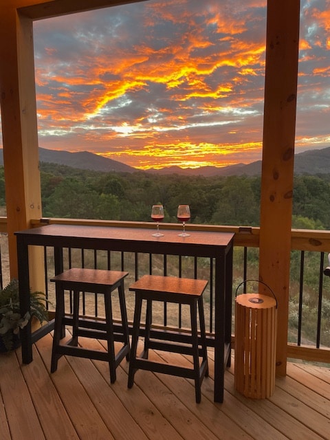 Cabin in the Clouds is a beautiful, one bedroom vacation home in a secluded, private community that's very quiet and has been renovated in 2023. The bathroom was completely remodeled, new living room furniture, new marble top dining room table, refurbished bedroom, new floors. There's a beautiful view from our porch that has deck furniture and propane grill. Inside is an open layout with open beam ceiling and pine paneling. Black Mountain is a quaint vacation town, you will love this place.