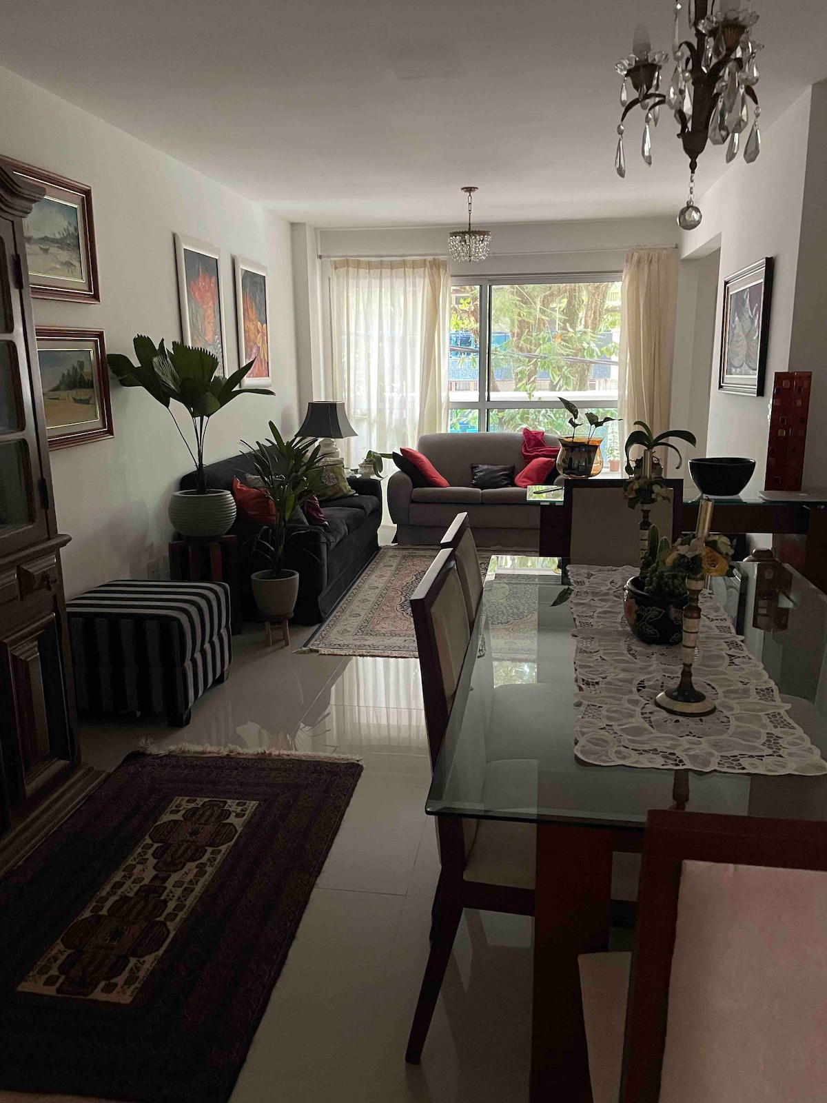 Step back from the bustle of everyday life in this inspirational space. The home features detailed parquet floors, curated paintings throughout, contrasting textures and motifs, eclectic furnishings and decor, and a mid-century modern aesthetic. When making your reservation, please acknowledge that you are aware that the house manager, Sandra, lives on the premises in a separate quarter with her daughter and is there during the week (and sometimes on the weekends) to greet you, check you in and out, and help you with anything you may need, such as serving your complimentary breakfast, one of the few places in all of Brazil to offer that. For more details, please read the House Rules section or the House Manual. Thank you! Building has 24-hour security, and cameras on all floors. Please note that absolutely no outside visitors are allowed. No one not listed on the reservation is permitted at our home, and no parties either. Absolutely NO smoking, either. Thank you! Ao fazer a reserva, por favor confirme estar ciente de que Sandra, que gerencia nossa casa, mora e está fisicamente presente no local, nos fundos do apartamento, em um quarto separado com sua filha e está lá durante a semana (e às vezes nos fins de semana) para recebê-los, fazer seu check-in e check-out e ajudá-los com o que precisar, assim como servir seu café da manhã incluído na diária, um dos poucos lugares em todo o Brasil que oferece isso. Para mais detalhes, por favor leia a seção sobre as Regras da Casa ou no Manual da Propriedade. Obrigado! Por favor, não são permitidos visitantes que não constem da reserva. Apenas os hóspedes cujos nomes estejam listados na reserva são permitidos em nossa casa. NÃO é permitido fumar em qualquer parte do apartamento ou do edifício. Obrigado! Welcome to our Copacabana retreat, which has been a treasured part of our family since the 1940’s. Each room of our home is brimming with history, though recent renovations sought to strike a balance between modernity, and the beauty of Rio’s illustrious past. In our home, you’ll find a vast common space that is perfect for small gatherings and dinners, whether you’re looking to skip out to the beach, or explore the other sights of Cidade Maravilhosa. (And trust us—there are many!) The kitchen is fully stocked with appliances and select ingredients, if guests choose to dine in. The bathrooms come equipped with brand-new showers and sinks in each, and a bathtub in one, with offerings like shampoo, conditioner, and soap available to guests. Each of the bedrooms include ample storage space for clothes, as well as side tables for belongings. High-speed WiFi and TVs with Netflix, Amazon Prime and NET access in every bedroom (Apple TV in one of the bedrooms) and a large screen-4K TV in the living room, are also at the guests’ disposal, while a coffee bar and alcohol bar are located in the common space for your enjoyment. There is also an antique dining room table, for sit-down meals. The apartment also has American-style and European-style electrical plugs as well as multiple USB ports and adapters. While we will most often not be able to greet you on-site, our house manager, Sandra, lives in a separate quarter with her daughter, on the premises. After living here for over 20 years, she knows the property and the neighborhood better than anyone, and will be here at during the week (and sometimes on weekends) to help facilitate guest’s needs, as well as the check-in and check-out process. She is also an amazing chef, so if you’re interested in tasting any traditional Brazilian dishes, don’t hesitate to ask! And of course, we will be reachable at all times over the Airbnb messaging app to answer any questions or address any comments you may have. We look forward to hosting you in the city we know, and love dearly! Guests have full access to the apartment. In terms of the kitchen, that includes a stove, an oven, a refrigerator, numerous dishware and cutlery, a toaster, a microwave, a dishwasher, a sink, and a breakfast island. Moving on, the dining room features a family-sized table, with six chairs, and a coffee bar featuring complimentary coffee or tea. Connected to the dining room is the living space, which is home to a large couch, a BYOB alcohol bar, a 4K high-definition TV, and a futon for ample lounging. All of the windows can be opened, and the lights have dimmers, to set the perfect ambience for a cafézinho (“coffee”) or a nice nap. As mentioned in the listing, there are three bedrooms— one with a queen-sized bed, one with a full-size bed and the third with two single beds that can be put together and converted to a queen-size bed. All come equipped with ample storage space and closets, as well as side tables for belongings. There are two bathrooms in this space. The one closest to the dining room features “His and Her” sinks, and a brand-new Amazonian-style rain shower. It also has space for toiletries, as well as some that are complimentary: travel-size shampoo, conditioner, body wash, soap, and lotion. The second bathroom, down the hall, has one sink, another Amazonian-style rain shower, and a sizeable standalone bathtub that was recently added. It features the same accessories as the first. In addition, bath and beach towels are provided to our guests. Outside of the kitchen, in the service area, there is a washer, and a drying rack to hang wet clothes. The washer is also a dryer. Check with Sandra. ● I give my guests space but am available when needed. ● Our house manager, Sandra, is at the apartment, in her own separate quarters, during weekdays and some weekend hours. As bossa nova legends have lauded for ages, this is the heart of Rio de Janeiro, a beachfront neighborhood lined with countless shops, restaurants, and botecos. The home is steps away from the volleyball nets, beach kiosks and cabanas dotting the beach. The apartment is in the heart of Copacabana, only 2 blocks away from the 