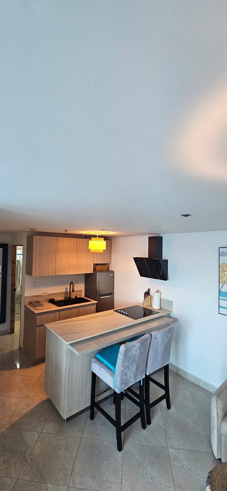 This is a new construction condominium located in the Ocean III building in the Playa Blanca Resort in Rio Hato, Panama. Here you will be staying in a modern designed space with private beach and pool access. Additionally, guests can use the larger shared pool with fun slides for the kids and other exciting water related rental options on-site. Next to the pool is a sports complex which offers courts for soccer, basketball, tennis, and volleyball that are available to reserve for $10 an hour.