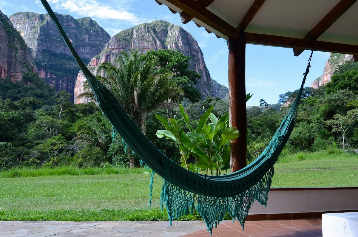 Private Nature Reserve on a road with a stream and natural forest. Come and enjoy the ample space to stroll, relax and unwind in the nature adjacent to Amboró National Park. Just 62 km (1h 15min) from the city of Santa Cruz de la Sierra, it is ideal for walks to the tourist places in the area: Rio Piraí, Samaipata, Cuevas, El Fuerte, Laguna Volcán, others. Couples, adventurers, families (with children) and pets are welcome. Come and recover your vital energy!