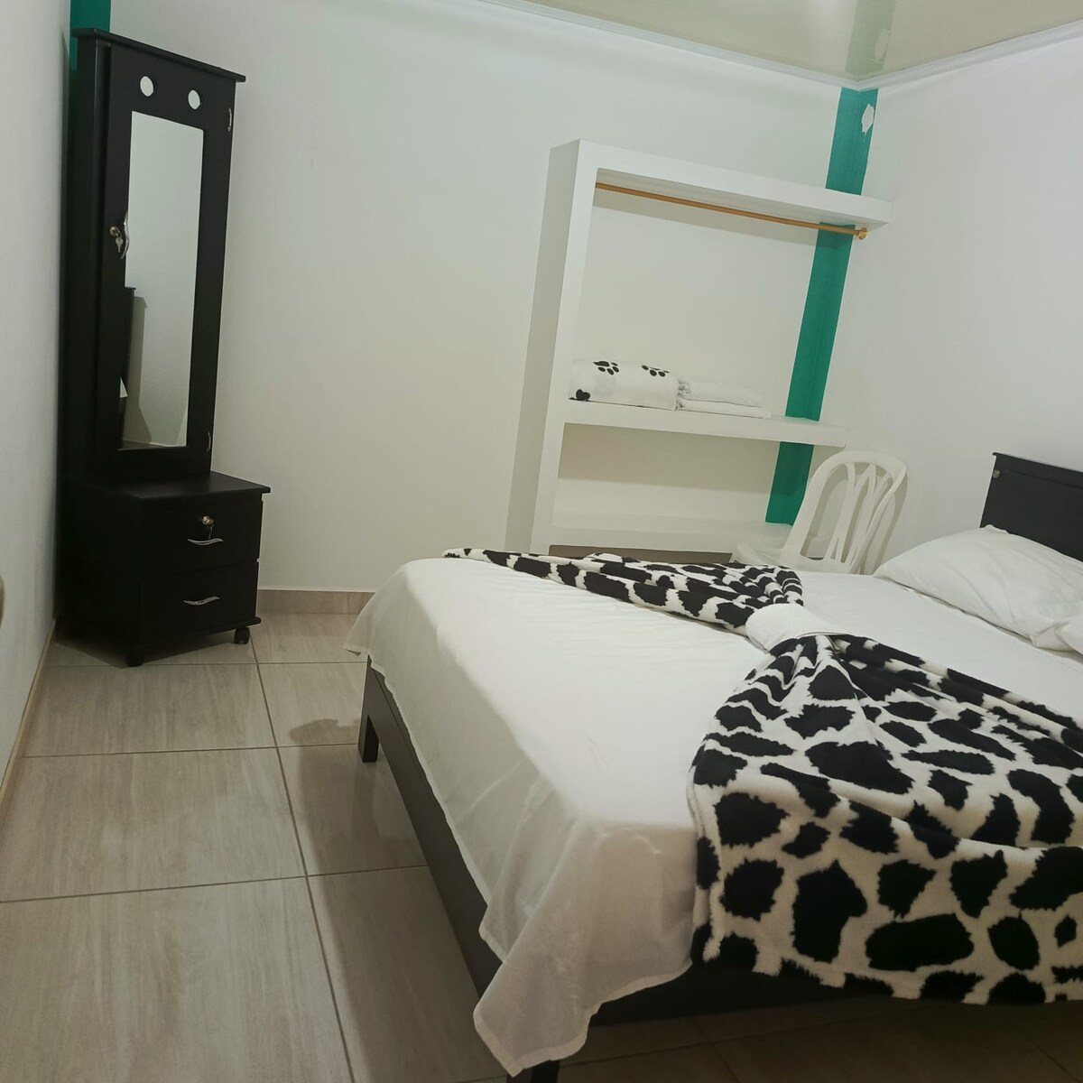 Ubicado a 2 cuadras del terminal de transporte, a 1 y 2 cuadras de los parques del municipio y de la Administración Municipal. Ideal para quienes buscan comodidad y trabajo remoto. Wifi rápido, tv con cable, Netflix para momentos de relax. Habitación amplia iluminada gracias a su gran ventanal y balcón. Cocina equipada, filtro de agua potable. 2 baños con duchas de agua caliente, patio de ropas con lavadora. Perfecto si buscas una experiencia local y cómoda.