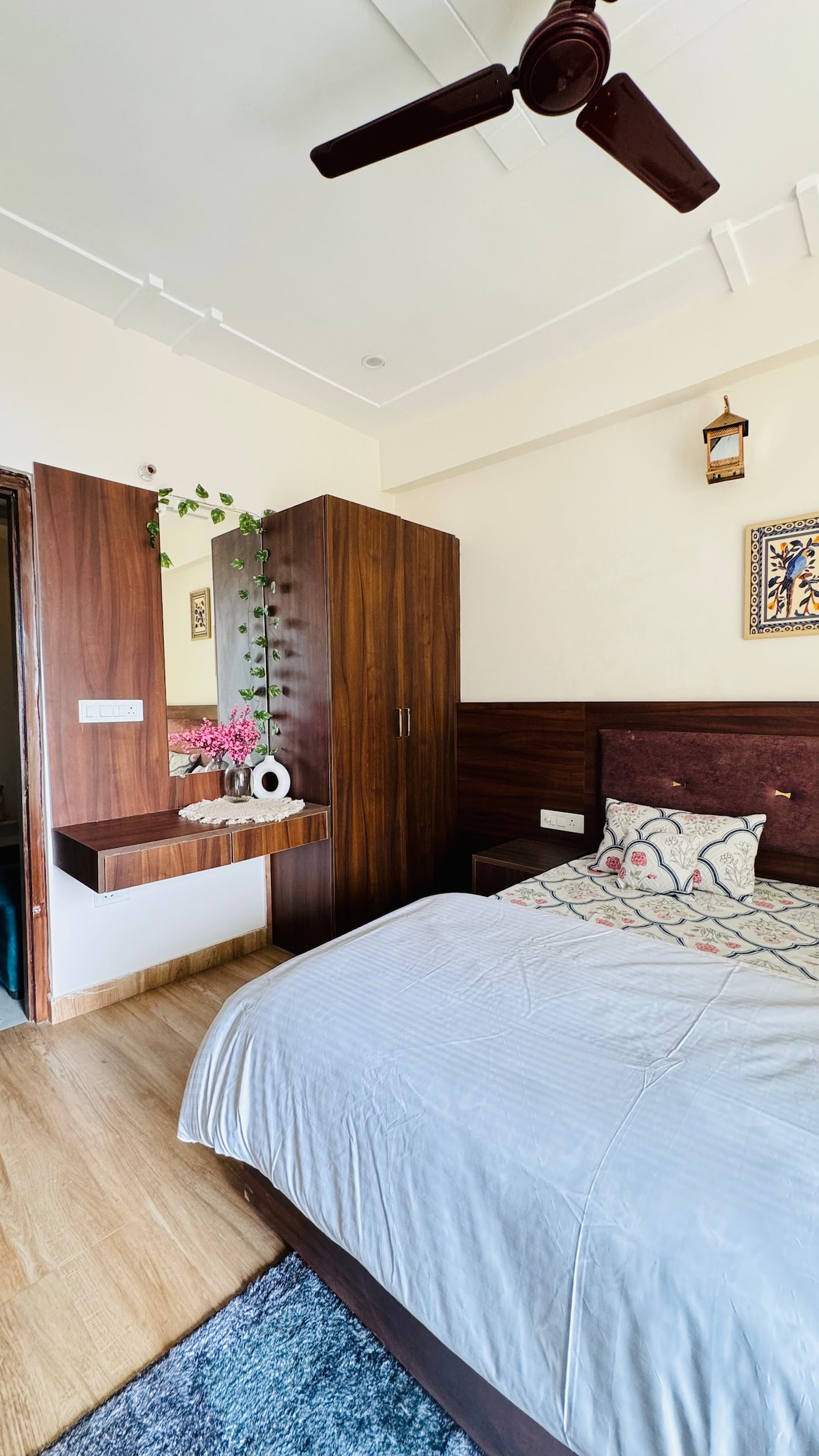 Maitri (मैत्री) represents friendship, comfort, and a sense of ease. • Located in a calm yet central part of the city, this thoughtfully planned studio is bright, clean, and comfortable. • Large windows bring in natural light, and the simple, uncluttered design keeps the space relaxed. • Ideal for couples, solo travellers, or work stays, it offers privacy and quiet without feeling cut off. Maitri is meant for slowing down, settling in, and enjoying a peaceful stay in the city.