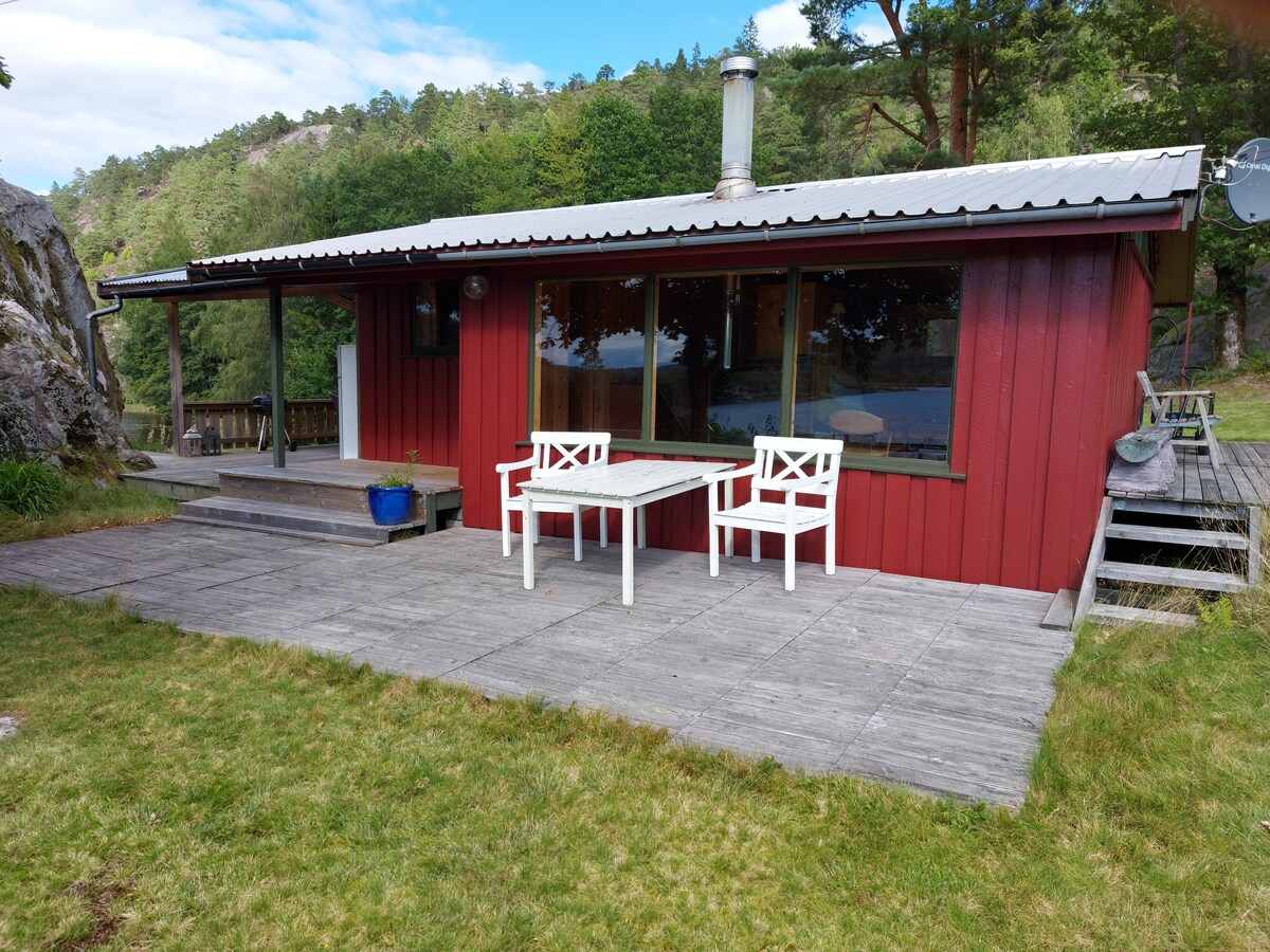 Enjoy a longer stay with uninterrupted peace and quiet in our charming cottage that accommodates four people. A bedroom with two bunks and one with a double bed. Possible for one person to sleep in the bed above. Located on the waterfront by Lake Skarvann, we offer the perfect base for swimming, fishing, kayaking/boat trips and more. The cabin has a shed with an outdoor toilet, shower, sink and cold and hot water. Large patio with covered outdoor kitchen. Great sun conditions. Experience complete relaxation without time impact and traffic noise.