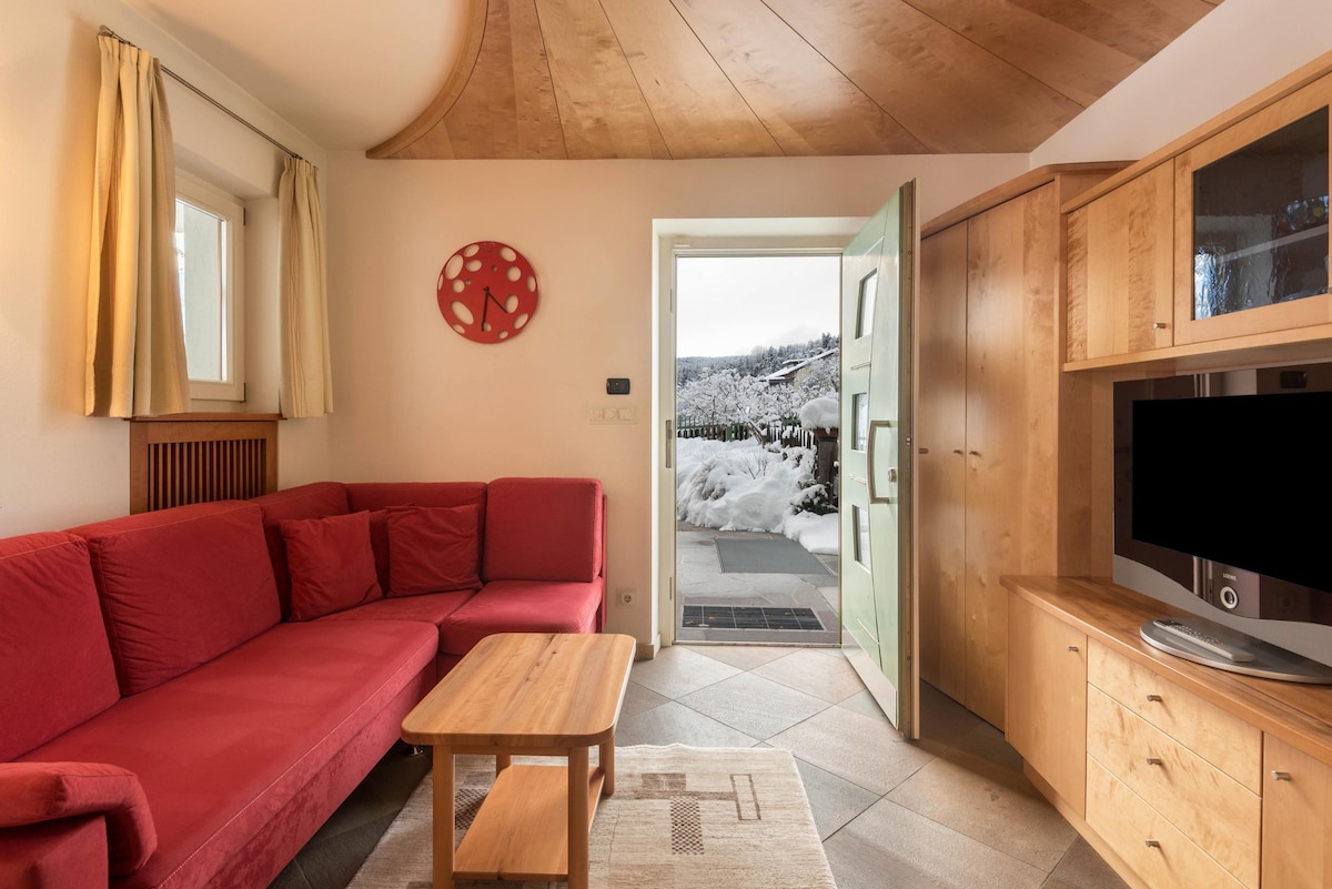 The beautiful Villa Anina with 6 holiday apartments and well-kept shared areas awaits you in the South Tyrolean community of Ritten. The communal areas include a large garden, a fitness room and a wellness area, which combine the traditional charm of the accommodation with modern comfort. The apartment "Afrika" consists of a comfortable living/dining room, a very well-equipped kitchenette, 2 bedrooms as well as one bathroom and can therefore accommodate 4 people.