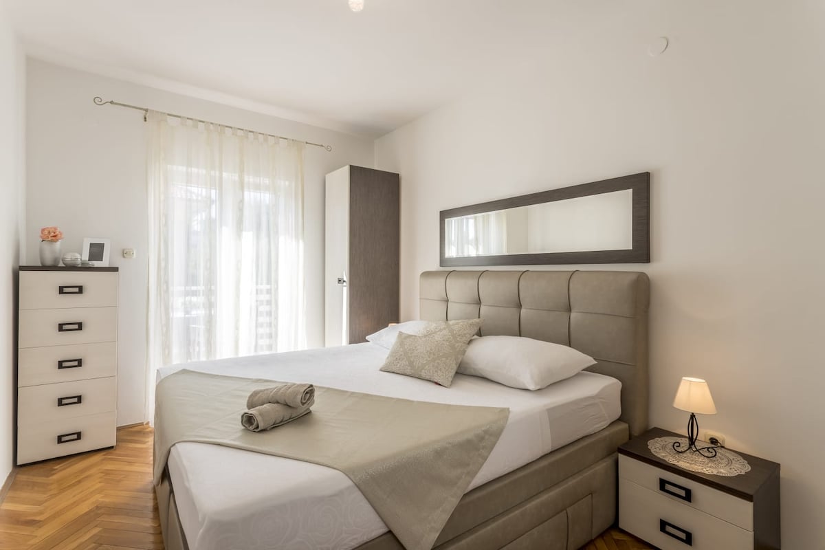 Stylish and thoughtfully designed apartment in a quiet, safe street, just a 5–8 min walk to Split’s Old Town and Bačvice beach. Compact yet fully equipped with everything you need – heated floors, A/C in every room, washer/dryer and more. Perfect for couples or small families. Everything is within walking distance, so most guests don’t need a car. ✔ 5–8 min walk to Old Town & beach ✔ Quiet, safe neighborhood ✔ Stylish, fully equipped space ✔ Heated floors & washer/dryer ✔ A/C in every room
