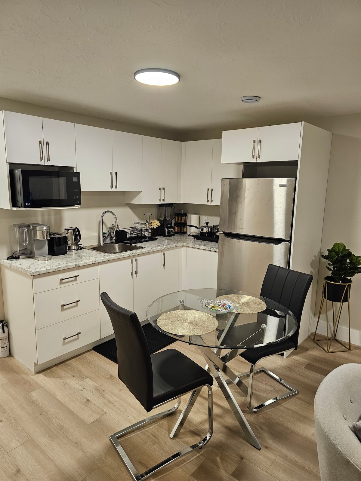 โญ Rated 4.9 by 350+ guests for cleanliness, comfort, and location. Welcome to our Brand-New Modern, Cozy & Stylish Retreat located in the sought-after area of Moncton Near Casino and Magnetic Hiil. An Exclusive Private one-bedroom apartment boasting its own entrance, a stunning contemporary kitchen, a cozy living area complete with a sofa bed, a luxuriously comfortable bedroom, private bathroom, and the convenience of an in-unit laundry room with washer & dryer.