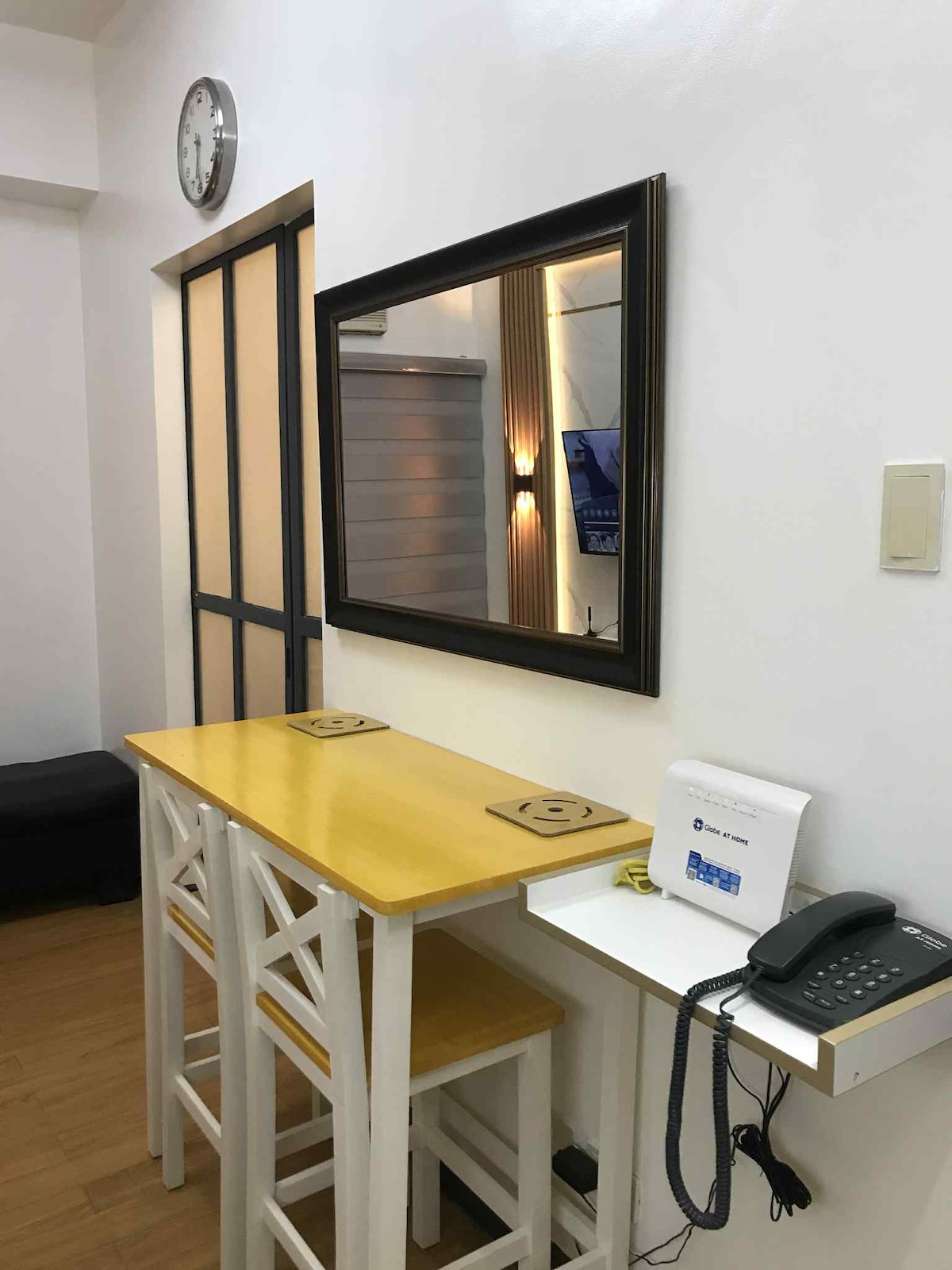 a big Air-conditioned 62sqm corner unit, stragically located at a main road with balcony opening at the pool. the place is few steps from SM Hypermarket for all of your needs and groceries as well as you will have a Well equipped Kitchen you can park directly under your place with A free parking at the basement Enjoy unli access to the pool and the gym the shower is with hot water, the Internet is 200 Mbps, you can all of your shows at 4k in the big smart TV