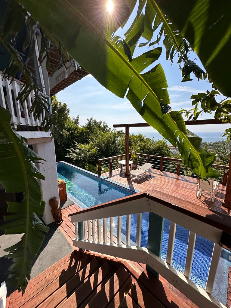 A peaceful two-bedroom hillside apartment with private pool, outdoor kitchen, and sea views just a short walk above West Bay Beach. Enjoy open-air island living, full privacy, and easy access to restaurants, snorkeling, and nightlife. The home is surrounded by trees and nature for a true Roatan experience. Optional jacuzzi, host-assisted laundry, A/C bedrooms, and quiet surroundings make this ideal for couples, families, divers, and long stays.