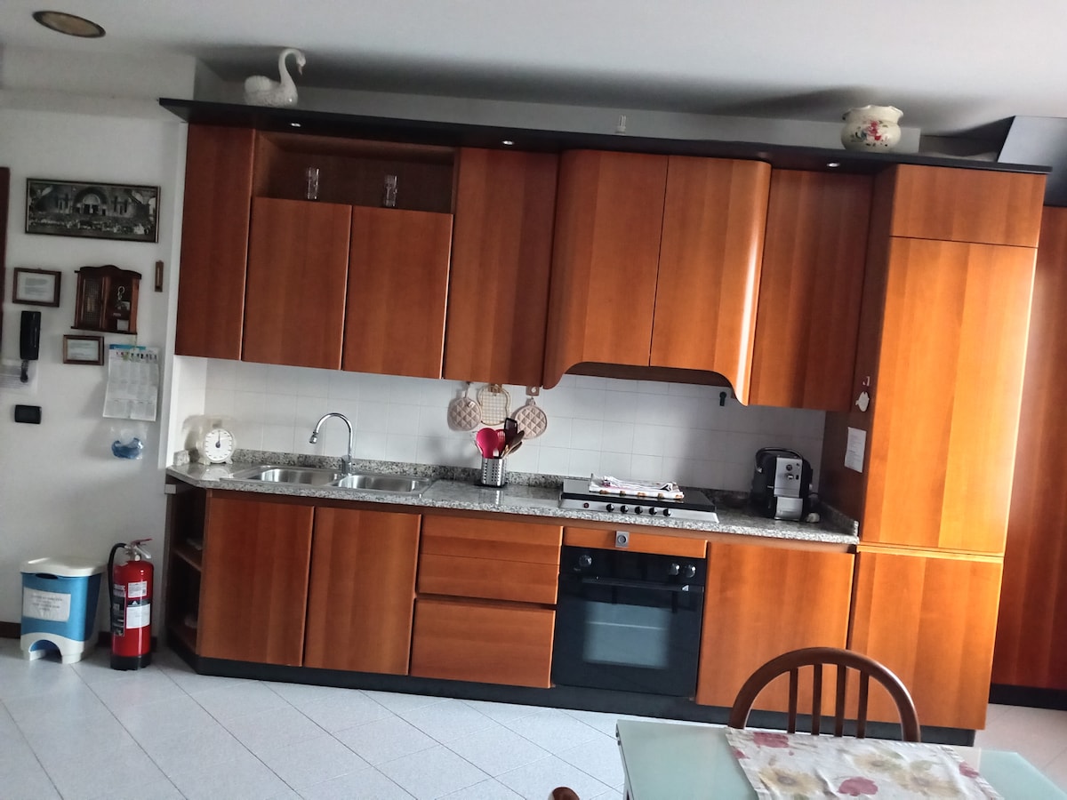 We love to host and make your stay special with kindness and smiles. Cozy apartment in a residential neighborhood, bright, wood floors, dishwasher, washing machine, air conditioning, wi-fi, perfect cleanliness. BUS stop to Venice 300 meters away: 45 minutes ride. TRAIN station 2 km away, free parking, the train reaches Venice in 20 minutes. If you have a car, it's ideal for visiting Treviso and Padua with the highway 3 km away. Stroller available for babies.