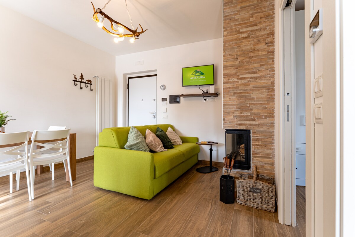 Antaura is a modern and elegant apartment in Roccaraso, ideal for families and couples. Set in a quiet area just 5 minutes from the Monte Pratello ski slopes, it offers comfort in every season. The apartment features an open-plan living area with fireplace, a fully equipped kitchen, two bedrooms, a bathroom with washing machine, and a large panoramic terrace with mountain views. High-speed Wi-Fi, self check-in, and private parking included.