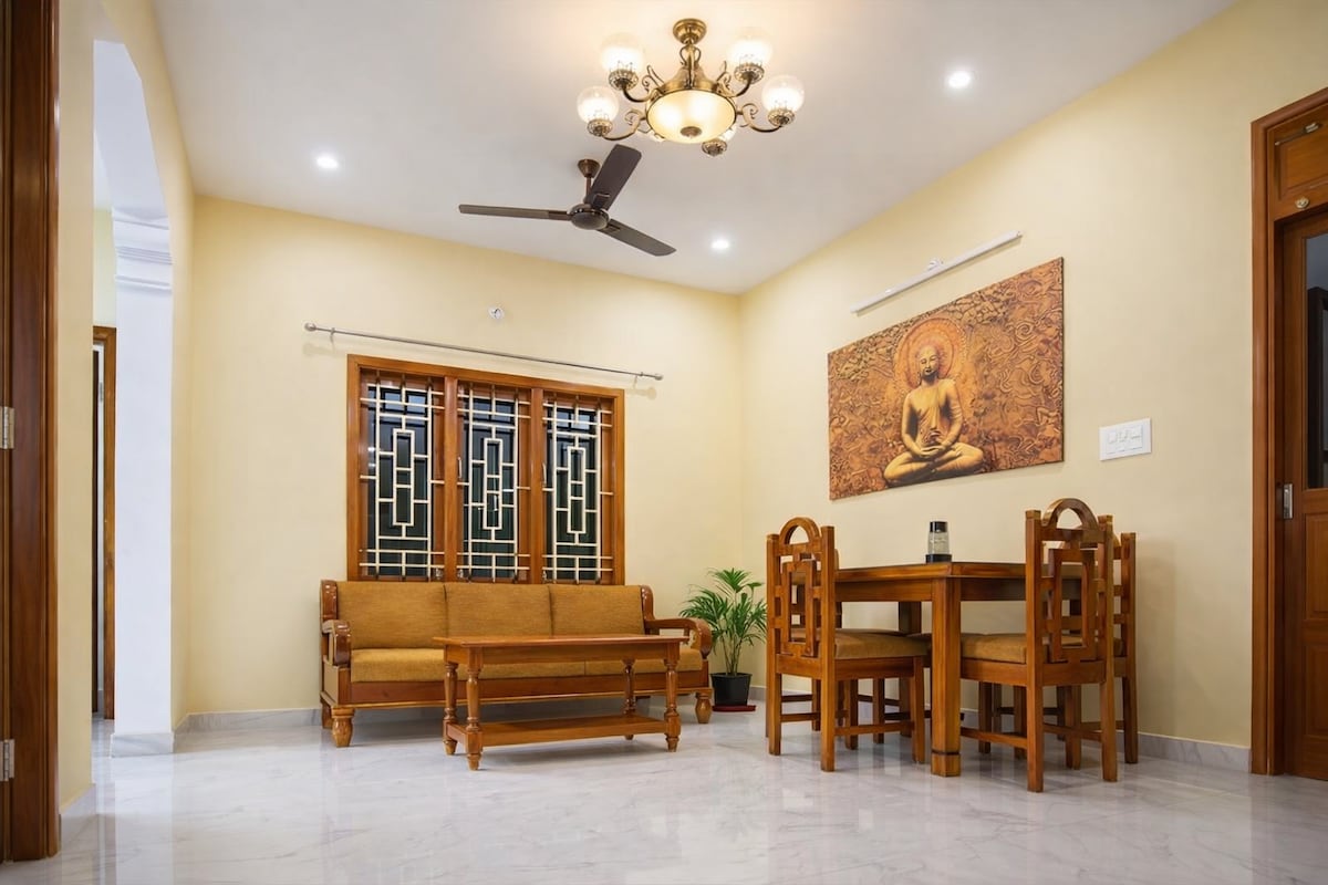 Enjoy a relaxed and stylish stay at Villa de Jeff, a spacious family-friendly villa located close to the best beaches and attractions of Pondicherry. The home features comfortable bedrooms, clean bathrooms, fast WiFi, and a cozy living area perfect for families and groups. Situated in a peaceful area with free street parking, it offers the ideal balance of comfort, privacy, and convenience. Whether you’re here to explore Pondicherry or unwind, this villa makes your stay comfortable and memorable