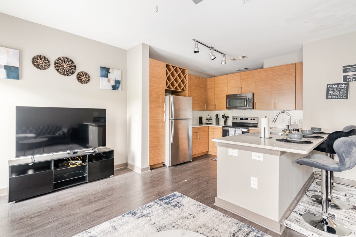 Nestled in Uptown Charlotte's charming historic neighborhood, the Fabulous Flat is exceptionally clean, safe, pet-friendly, and lovingly hosted by the on-site homeowner. Stylish with striking skyline views offering a large bedroom, a charming living room, a well-equipped kitchen, and your own private balcony! Thoughtfully luxurious amenities - even snacks! Super-fast, reliable WiFi. Premium cable/streaming.