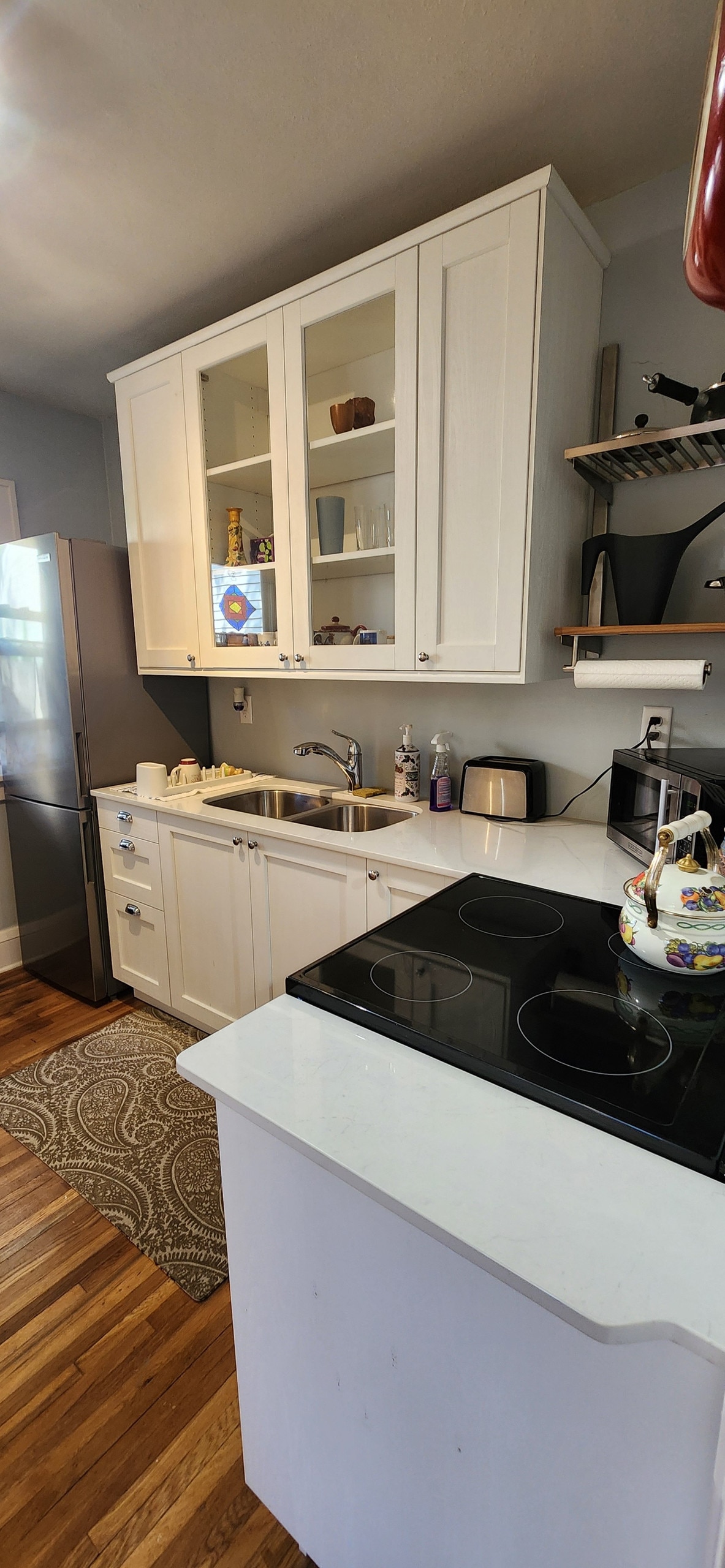 Kick back and relax in this open concept, tree top bungalow. Feel at peace nestled in the tree tops. Designed with stylish eco-conscious details in mind, this recently renovated unit boasts a new bathroom and upcycled kitchen. There is a sweet lil den and 2 bistro decks to enjoy morning coffee and a glass of vino at night. The king sized bed is nearly tucked into the trees, so you’ll get the best nights of rest! Restaurants and stores within walking distance! Owner occupied first floor unit:)