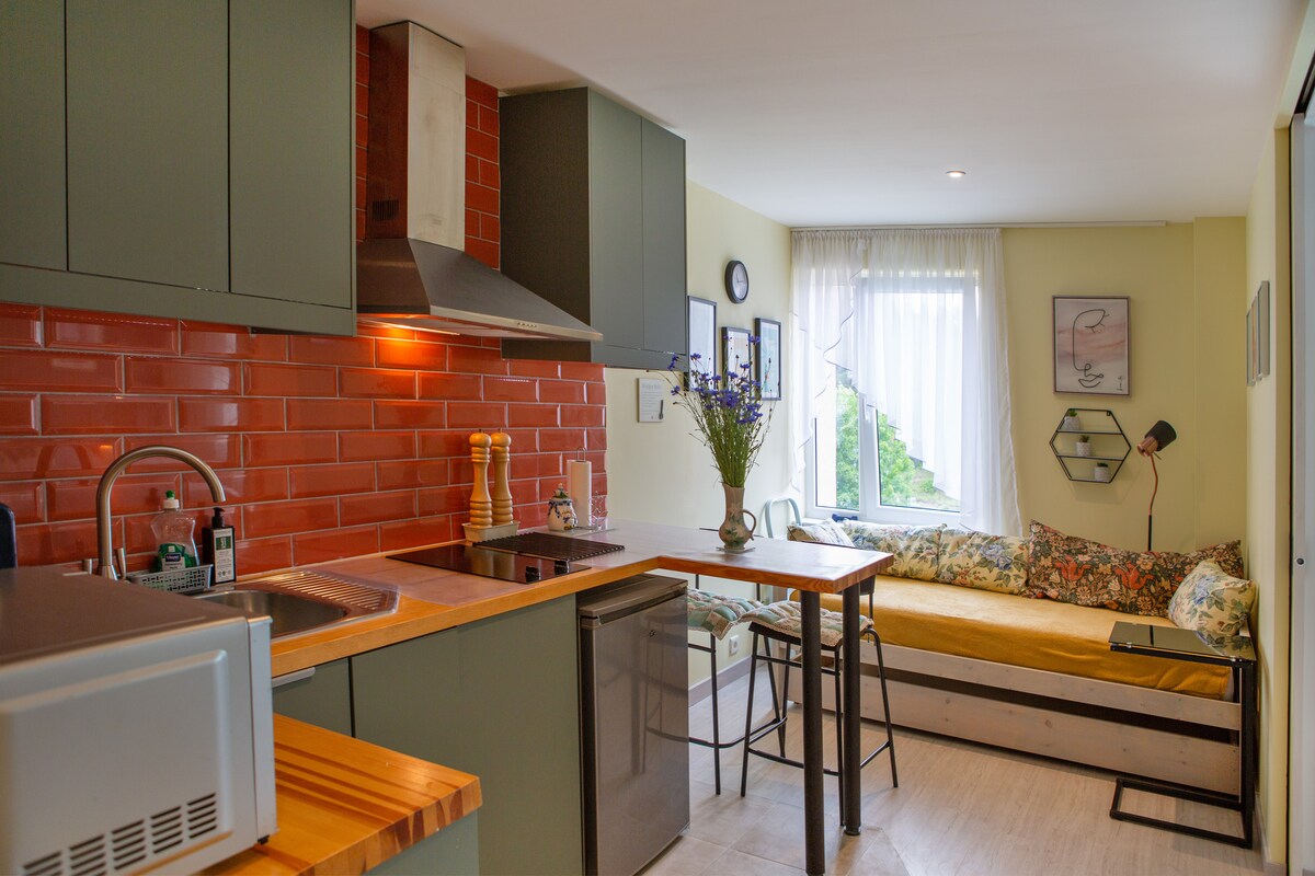 Book & Relax. Cozy small studio apartment located near two beaches and Roja river. Apartment is in the center of Roja. Restaurants are nearby. In Roja you will find a fish shop, food shops, pharmacies. You will enjoy nice areas for kids. Roja has a yacht port, two long and nice breakwaters with small lighthouses. Apartment is simple, but comfy. In one separated space you have kitchen, relax zone and a bedroom with a double bed. You have small bathroom with a shower. Kitchen is fully equipped.
