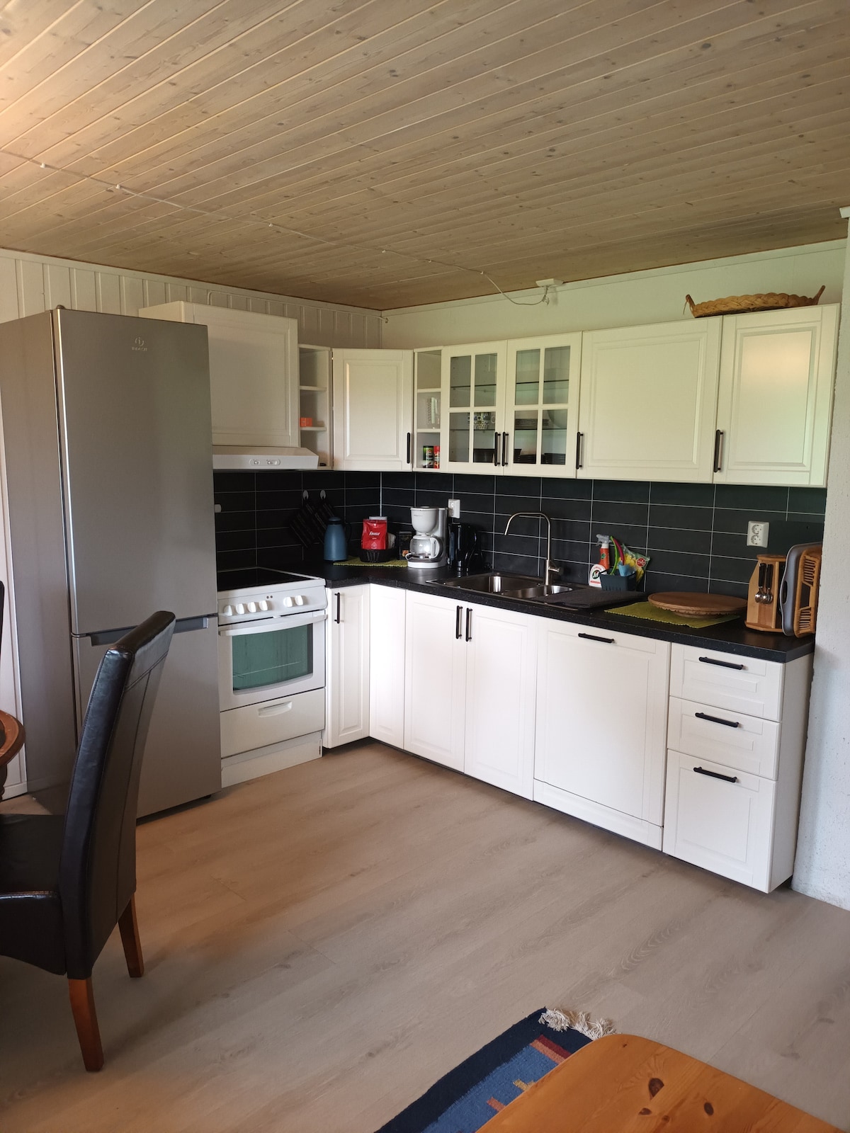 Take a break and relax in this peaceful oasis. Beautiful views of mountains and fjords. Pergola with Jacuzzi, 2 hammocks and ice pod/ice bath. Bathroom: Sauna, large shower, shower toilet. Master bedroom: double bed 150×200 Guest room: Single bed 90×200 cm Loft: 3 mattresses 90×200 cm 1 piece 75×200 cm 1 piece 120×200 Duvets 140×200cm pillows 50×70cm Laundry room: washing machine, vacuum cleaner, washing equipment. Living room: 75" LED TV with built-in Chromecast, Bose surround, by the oven. Kitchen: Kettle and most of the equipment.