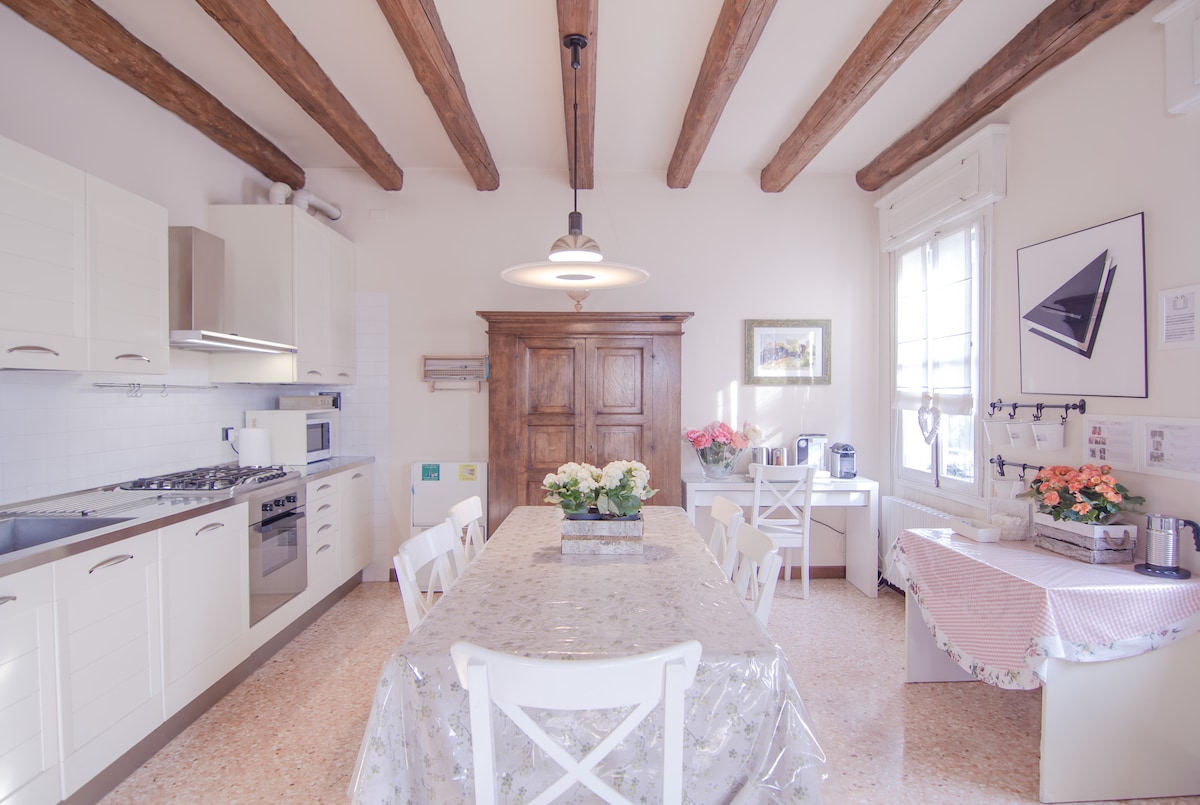 Brandolese is a quiet, newly renovated apartment on the entire last floor of a traditional Venetian-style villa with a large garden. Located in a very quiet residential area, it can accommodate up to seven adults and a baby. The apartment consists of two double bedrooms, two bathrooms, a terrace overlooking a private garden, a fully equipped kitchen, and a living room with a sofa double bed. It is possible to add an extra single bed in a double room.
