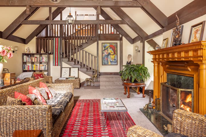 Complementing the natural beauty of the exterior is a cozy and eclectic interior filled with treasured art and objects gathered both locally and from around the world.