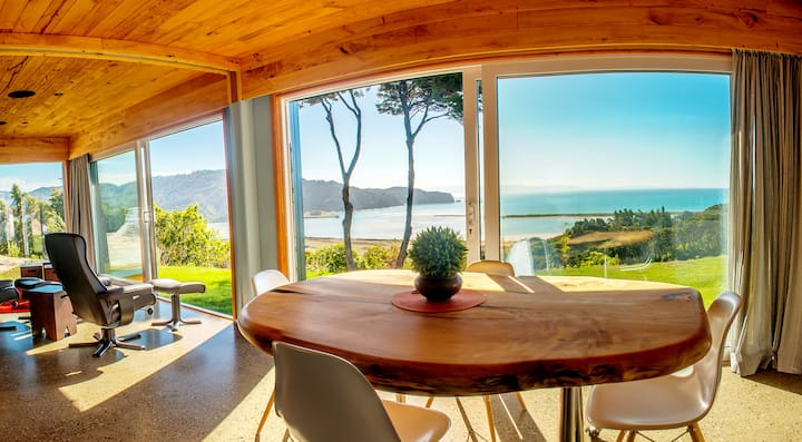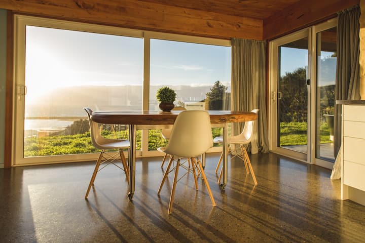 Take a vacation in Kiwi Greenie and enjoy a future-thinking holiday house that catches all the afternoon sun, stores it, and maintains a comfortable temperature at any time of year.