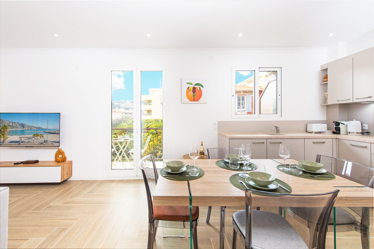 Welcome to our AIRBNB in Menton, the pearl of the French Riviera! Our beautiful 60 m2 2-room apartment, fully air-conditioned with elevator, offers you a large bedroom, a very comfortable living room and a fully equipped independent kitchen. Take advantage of the sunny balcony to admire the surroundings. Explore the old town, beaches and botanical gardens. Discover the cultural richness of Menton and visit Italy, Monaco, Nice and the surrounding area. You'll love staying with us :)
