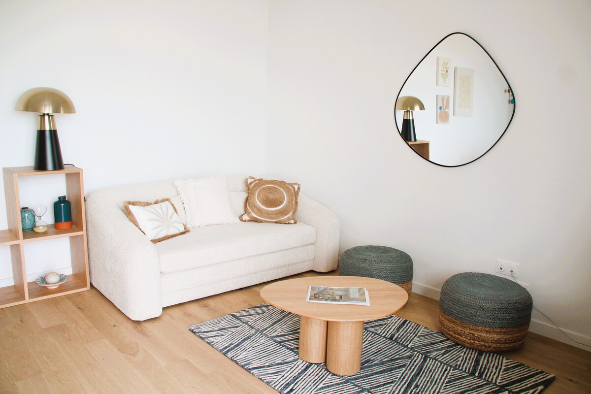Ideal location for walking around Roscoff: a 5-minute walk to the historic town center (shops, restaurants and old port). Cross the street and you are at the Thalasso & Spa and 50 m from the sea (Rockroum beach, ideal for a Sunday family outing). Ideally located also for going to the Île de Batz. Charming apartment freshly renovated by an architect (2024). Design, color and decorative pieces ideally chosen to make you feel at home!